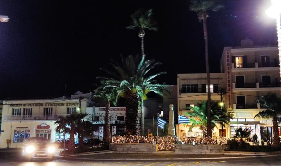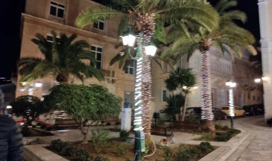 Πέραν της φωταγώγησης του Χριστουγεννιάτικου δέντρου στην πλατεία Μιαούλη και των φωτιστικών στύλων περιμετρικά του κέντρου της, έχουν φωτιστεί με ειδικές “γιρλάντες” και οι μεγάλοι στύλοι στο παραλιακό μέτωπο της Ερμούπολης, καθώς όμως και η οδός Νικ. Μανδηλαρά.