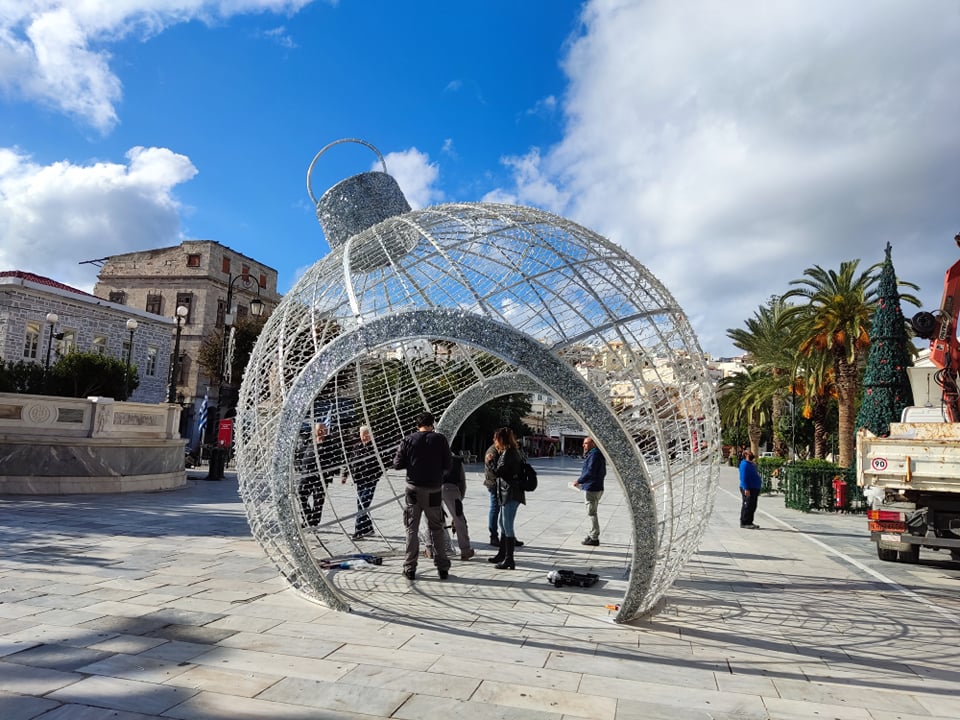 Αξίζει να προστεθεί ότι σήμερα το πρωί στην πλατεία Μιαούλη ο Δήμος πρόσθεσε μία τεράστια χριστουγεννιάτικη μπάλα σε κεντρικό σημείο, η οποία το βράδυ θα φωτίζεται.