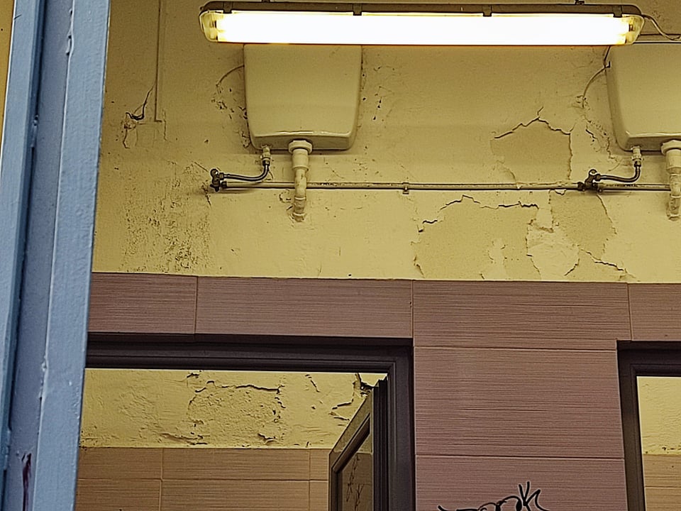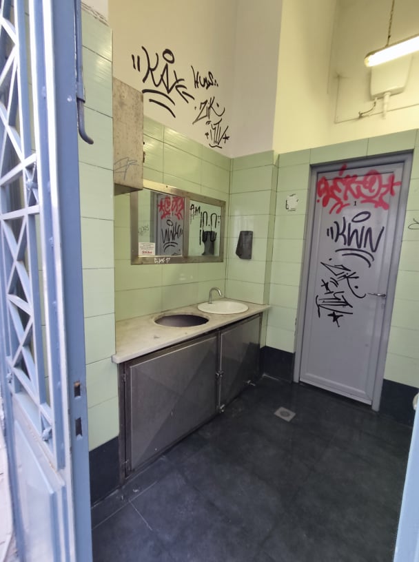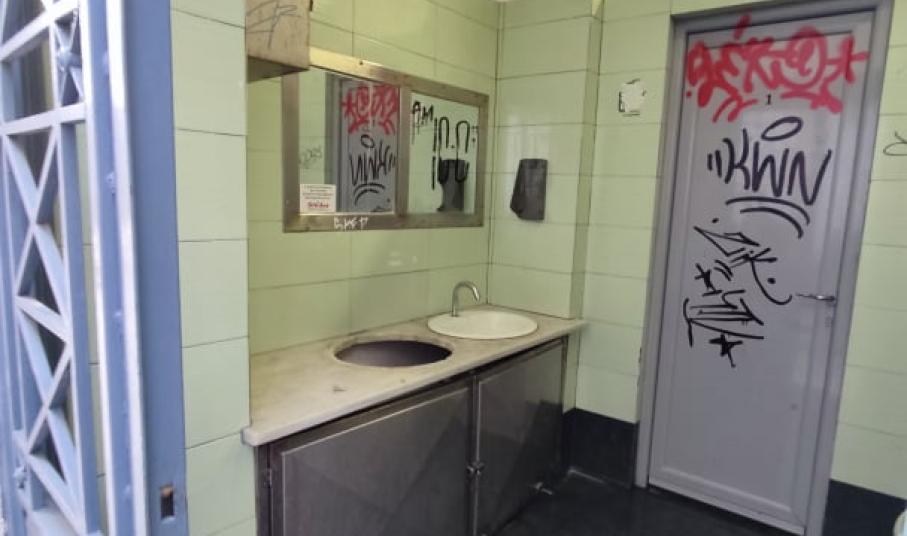 Η κατάσταση της οδού Ανάφης με τη δυσοσμία και τα στίγματα από τα απορρίμματα και τα μικρά σκουπίδια παραμένουν στην είσοδο των δημοτικών τουαλετών στο κέντρο της Ερμούπολης, ενώ επιπλέον και στον εσωτερικό χώρο τους, υπάρχουν φθορές, όπως σπασμένοι νιπτήρες. Επιπλέον, παρατηρείται και πτώση σοβάδων.