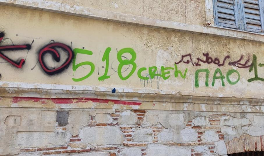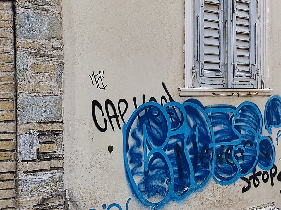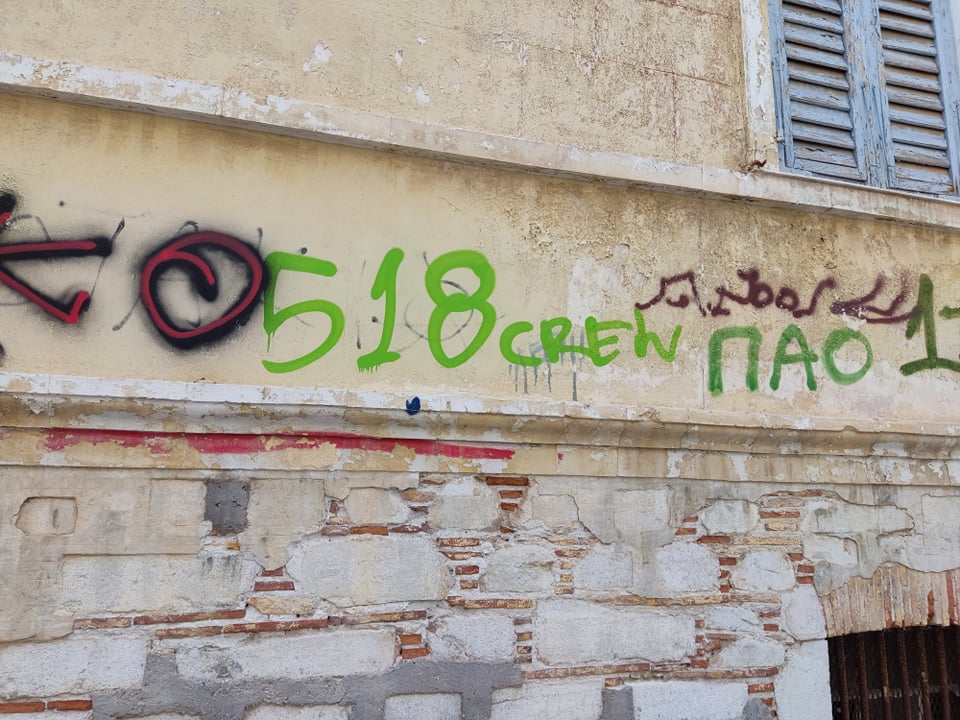 Νέα γκράφιτι σε νεοκλασικά της Ερμούπολης ενώ άγνωστοι βάφουν και την είσοδο του Δημαρχιακού Μεγάρου