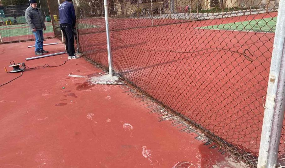 Ειδικότερα, οι εργάτες του Δήμου, προ τριών ημερών προχώρησαν σε αποκαταστάσεις και ενισχύσεις του διαχωριστικού πλέγματος των γηπέδων τένις στην Ερμούπολη, καθώς και σε ισχυροποίηση των βάσεων της περίφραξης συνολικά, προκειμένου να αποφευχθούν μεγάλης έκτασης ζημιές, στα ανοικτά γήπεδα, όπου και οι άνεμοι δημιουργούν “δίνη”, από την ένταση με την οποίαν πνέουν.