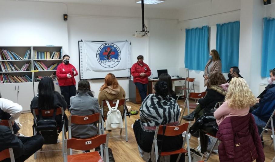 Μετά από πρόσκληση της Διευθύντριας του Δημοτικού Σχολείου Νάουσας, κας Ανδρεάκου Κωνσταντίνας, για μια ακόμα φορά, μέλη της ΕΟΔ Κυκλάδων πραγματοποίησαν, το Σάββατο 12-2-2022,  σεμινάριο Πρώτων Βοηθειών, στους εκπαιδευτικούς του σχολείου, τηρώντας τα Πρωτόκολλα προστασίας λόγω covid.