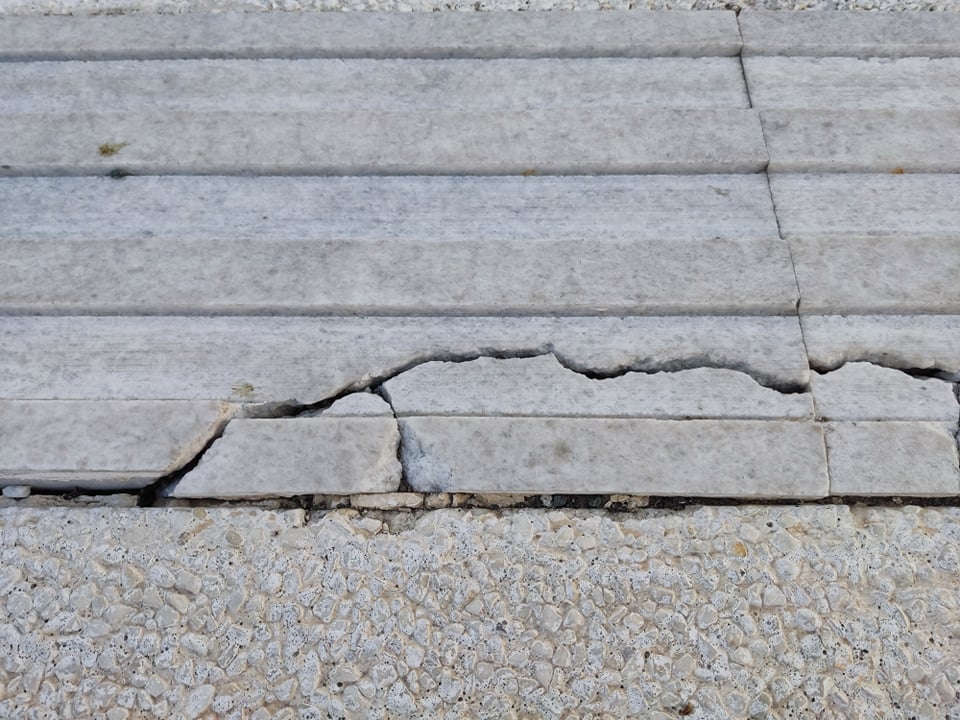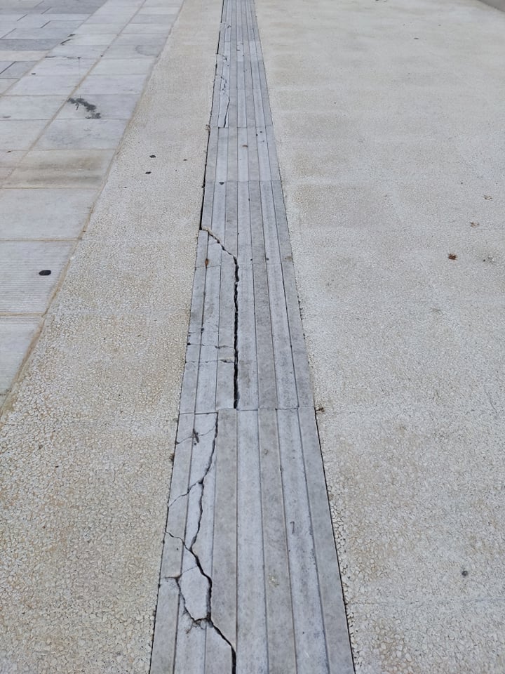 Οι εικόνες της εφημερίδας προδίδουν την κάκιστη κατάσταση των ειδικών “δαπέδων”, σε ένα νησί που έχει βραβευθεί για την προσβασιμότητα.