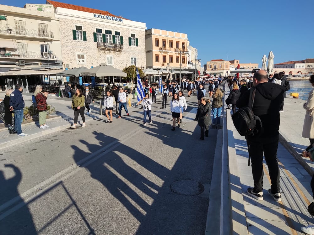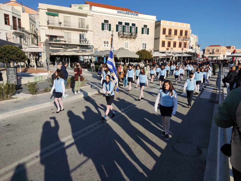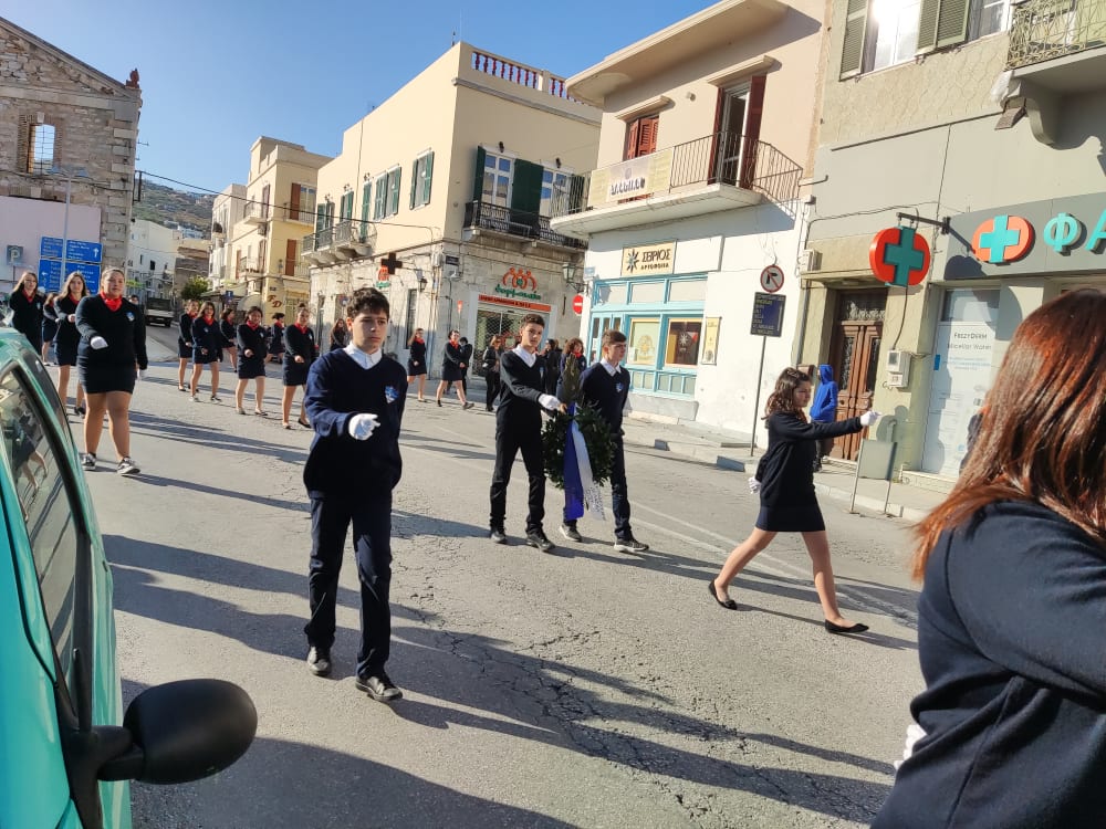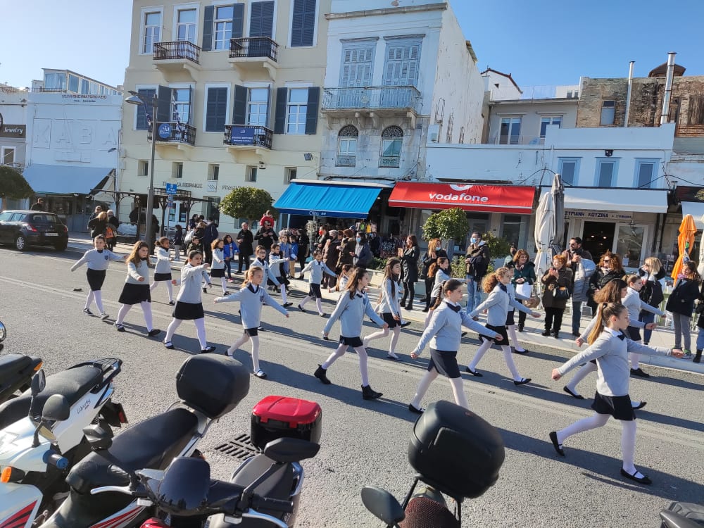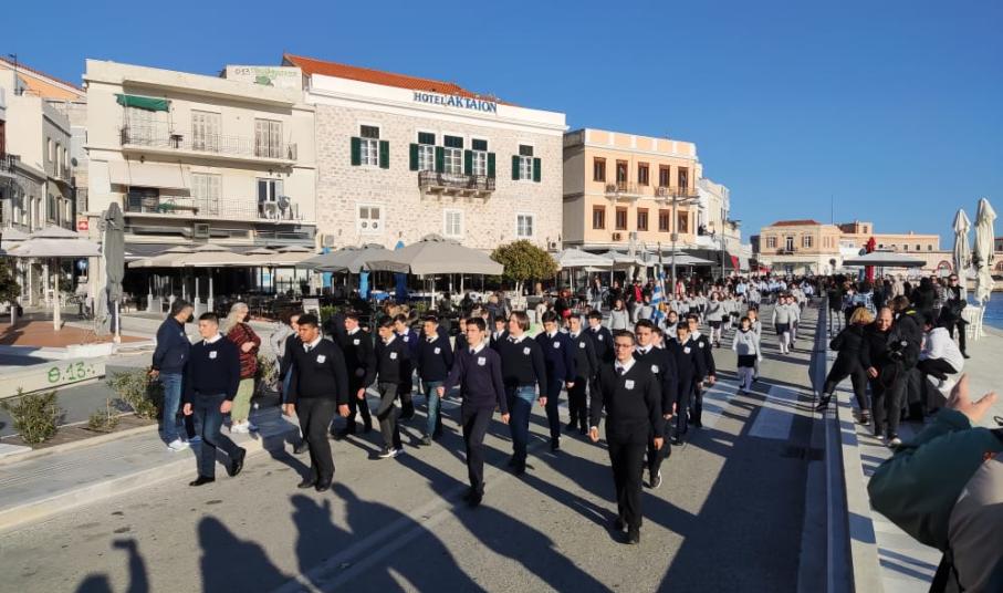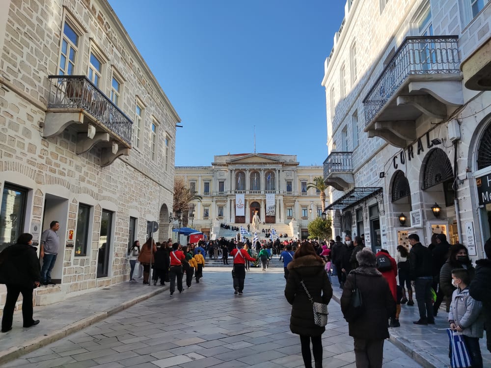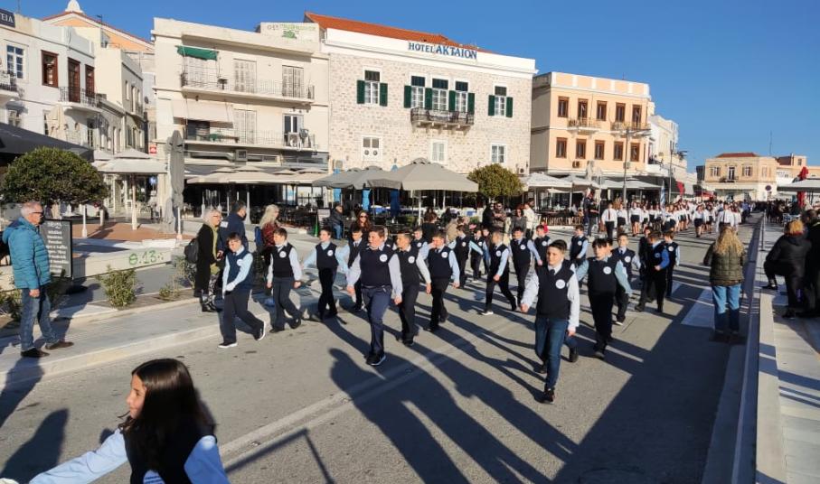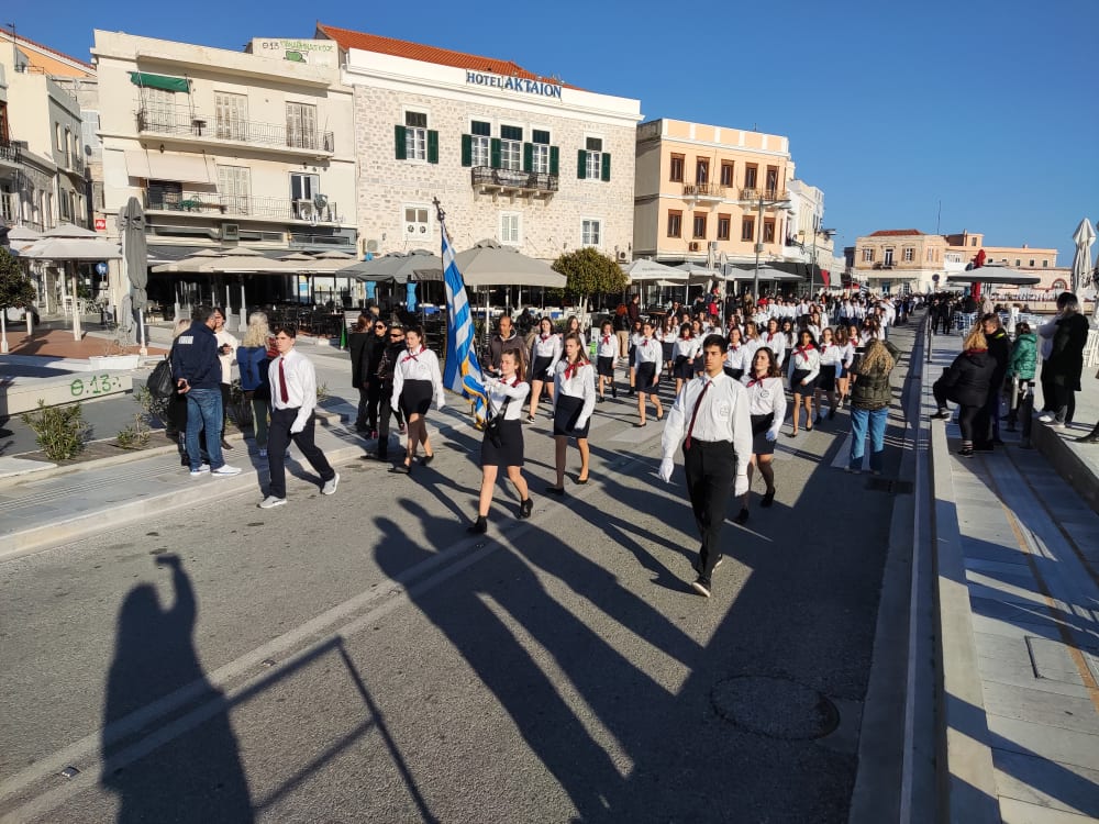 Μετά από δύο έτη πανδημίας, οι μαθητές πραγματοποιούν κανονικά τη στεφάνωση, τηρώντας τα μέτρα προστασίας ενάντια στον κορωνοϊό. Σύμφωνα με το πρόγραμμα της στεφάνωσης οι μαθητές ξεκίνησαν από την πλατεία Ηρώων και σταδιακά φθάνουν στο κέντρο της Ερμούπολης.