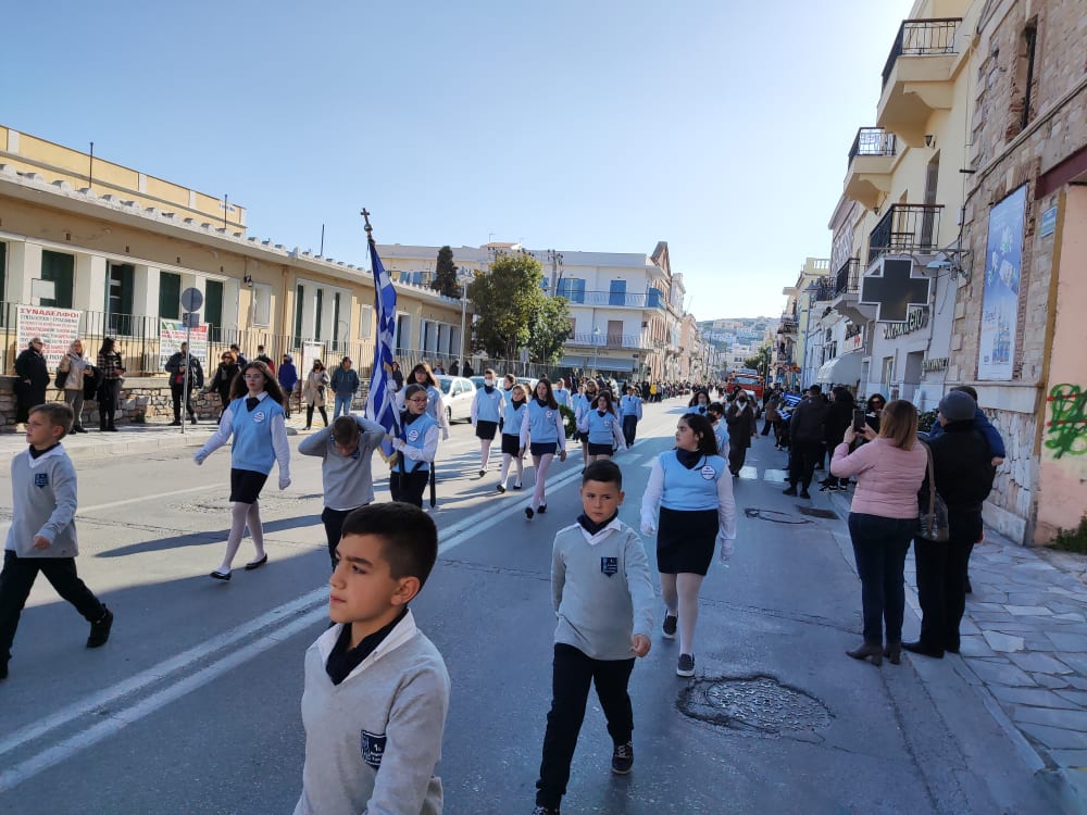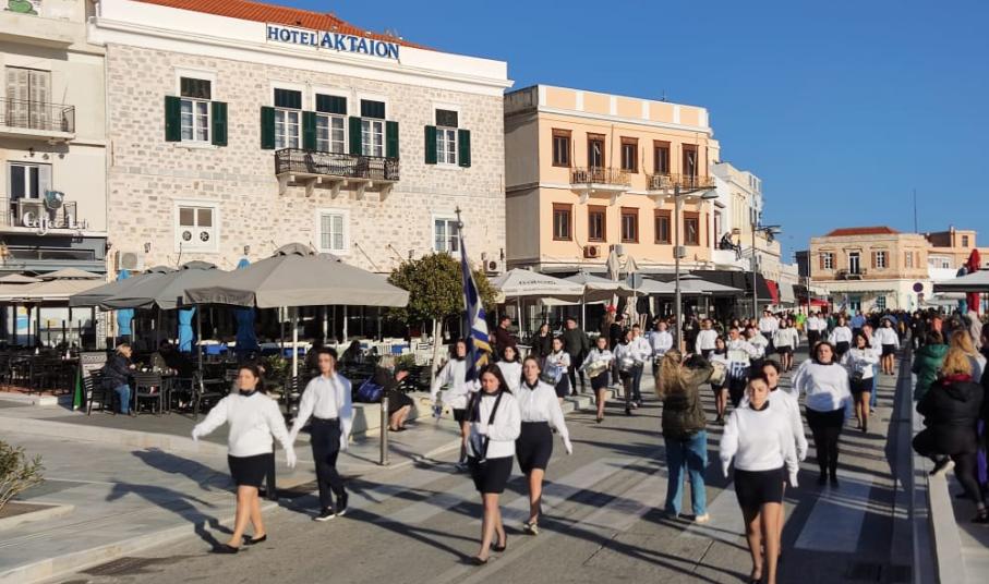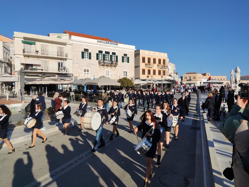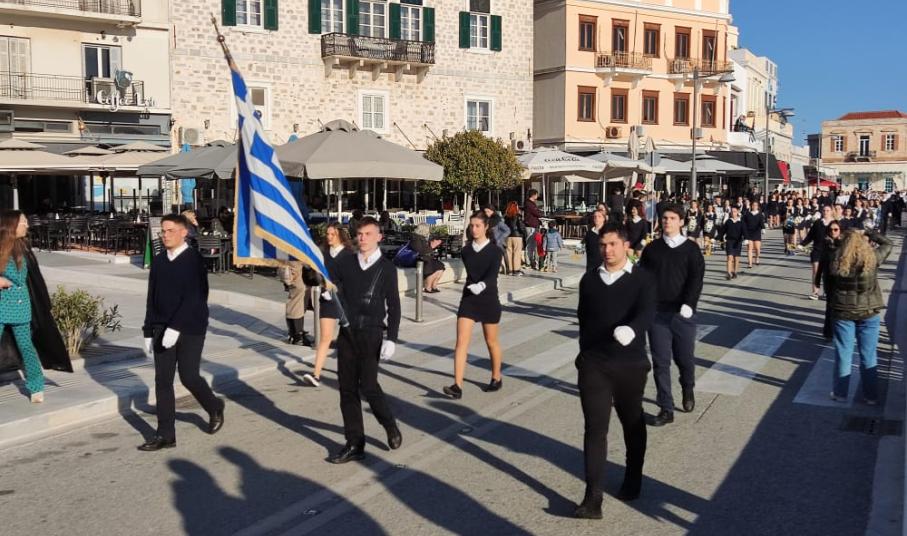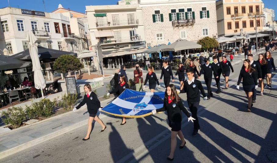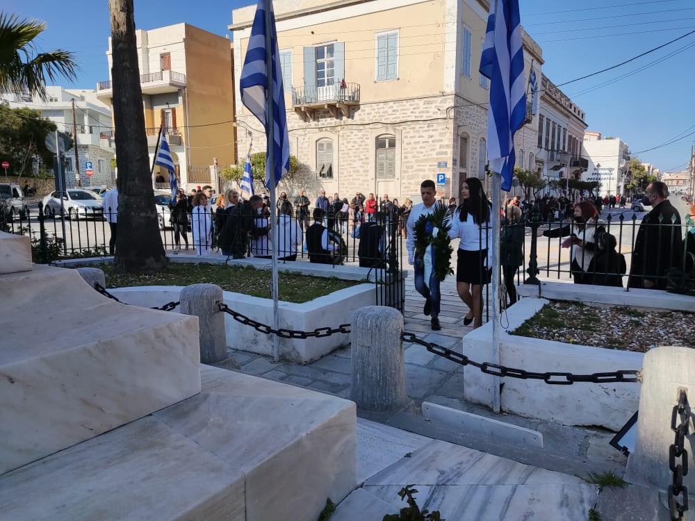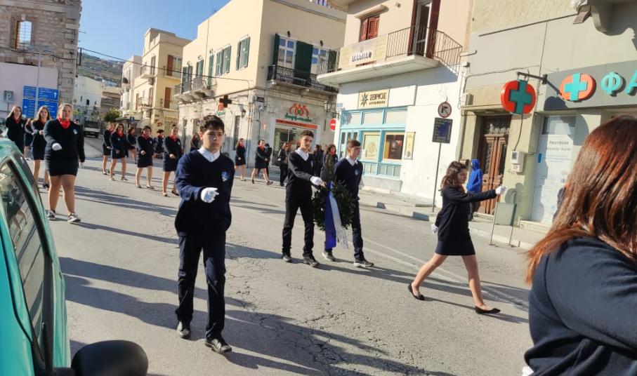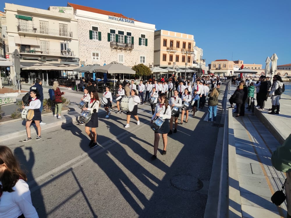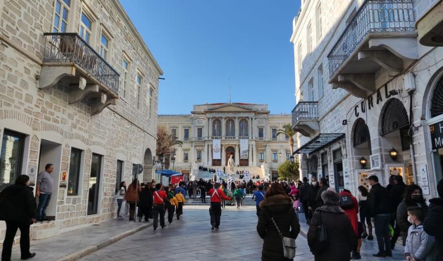 Μετά από δύο έτη πανδημίας, οι μαθητές πραγματοποιούν κανονικά τη στεφάνωση, τηρώντας τα μέτρα προστασίας ενάντια στον κορωνοϊό. Σύμφωνα με το πρόγραμμα της στεφάνωσης οι μαθητές ξεκίνησαν από την πλατεία Ηρώων και σταδιακά φθάνουν στο κέντρο της Ερμούπολης.