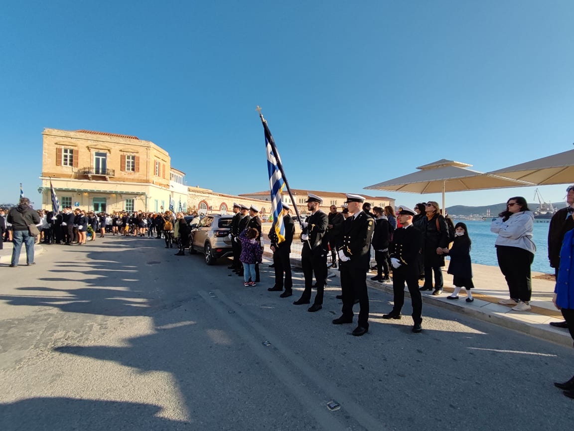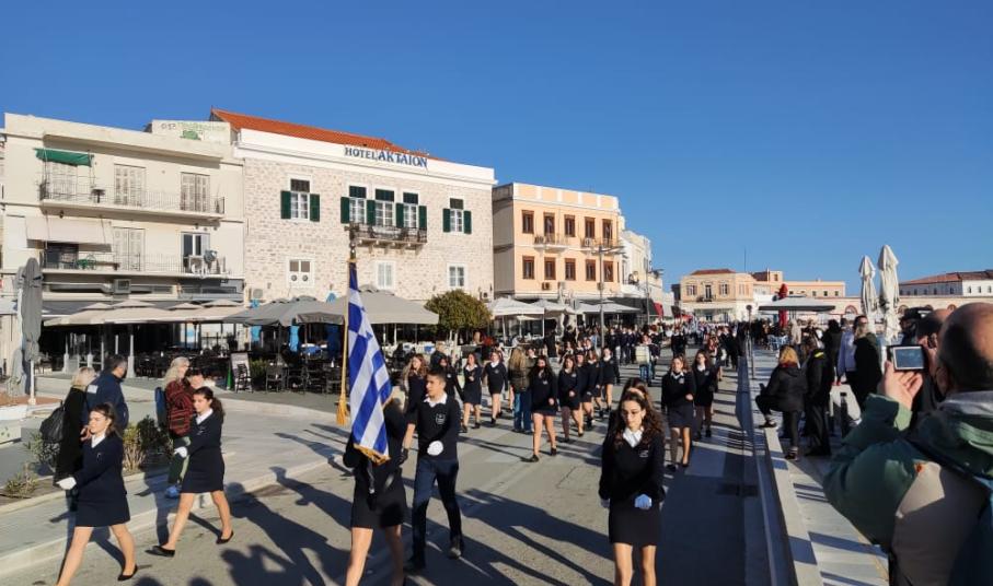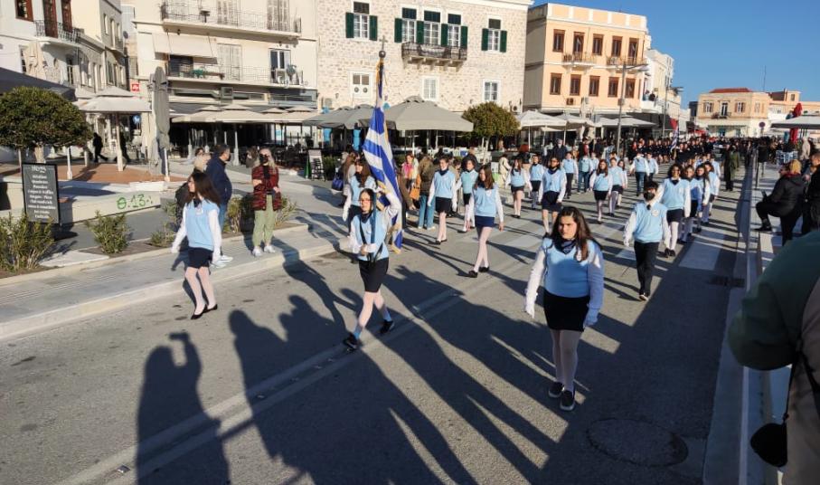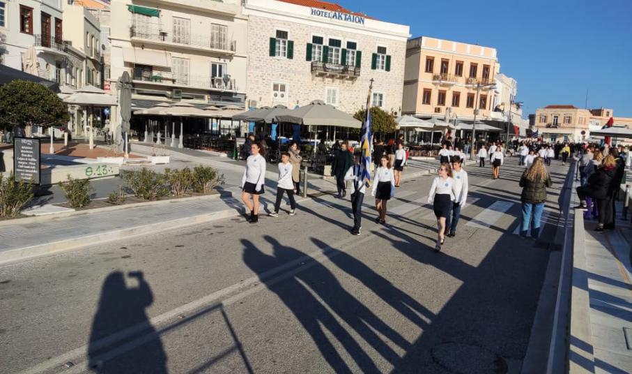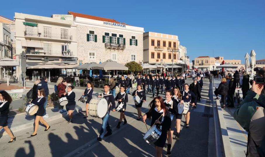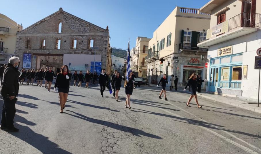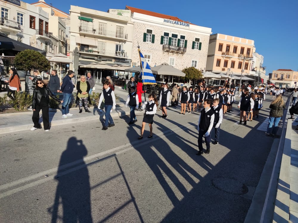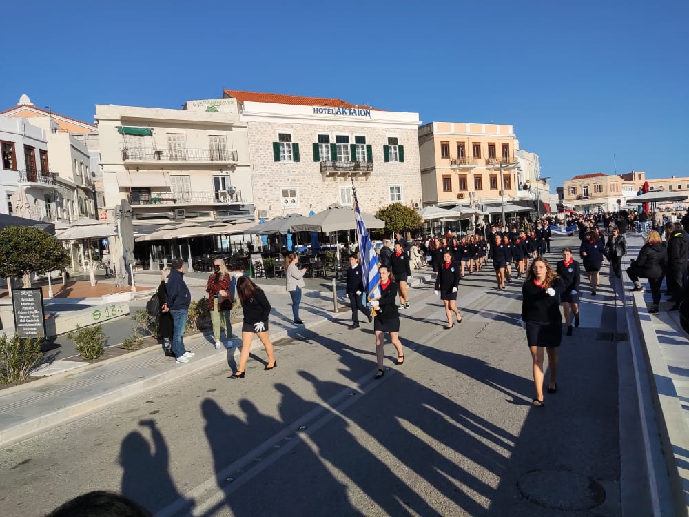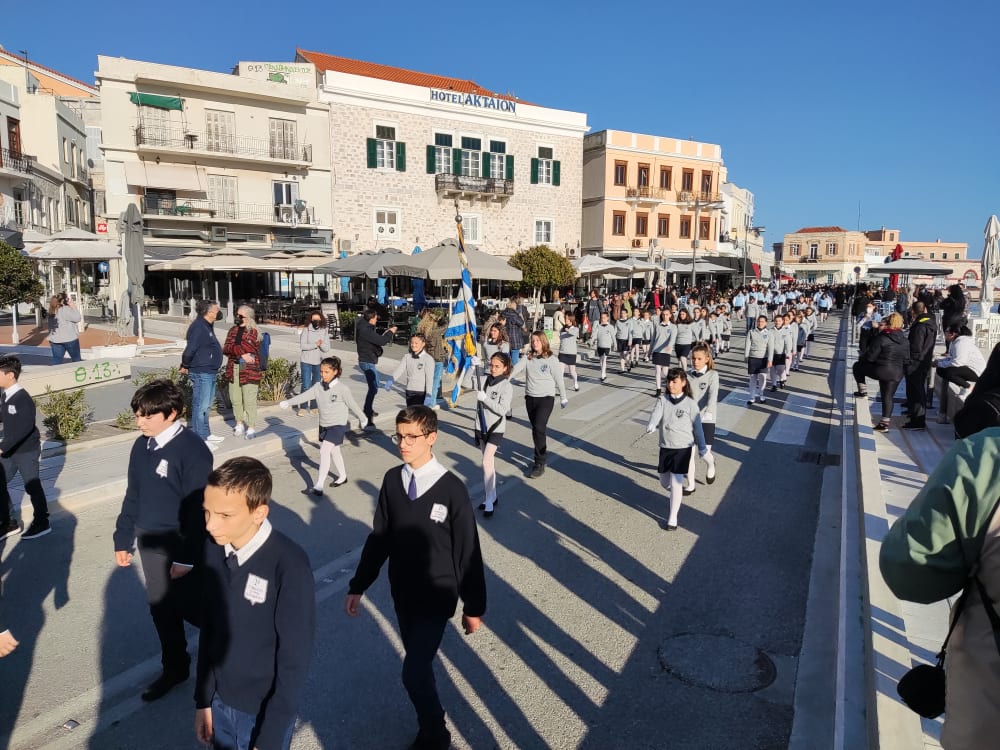 Μετά από δύο έτη πανδημίας, οι μαθητές πραγματοποιούν κανονικά τη στεφάνωση, τηρώντας τα μέτρα προστασίας ενάντια στον κορωνοϊό. Σύμφωνα με το πρόγραμμα της στεφάνωσης οι μαθητές ξεκίνησαν από την πλατεία Ηρώων και σταδιακά φθάνουν στο κέντρο της Ερμούπολης.