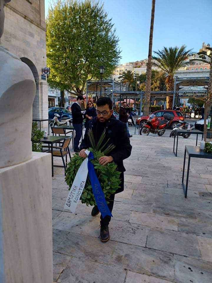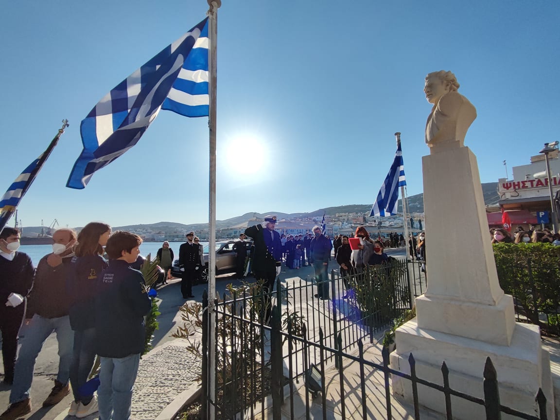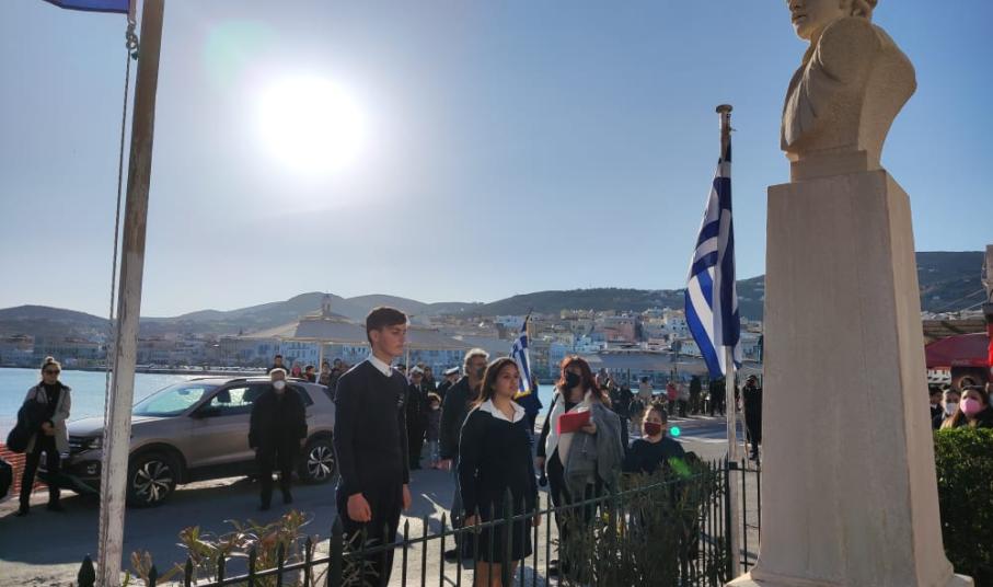 Την εθνική επέτειο της Ελληνικής Επανάστασης της 25ης Μαρτίου τιμούν οι μαθητές και σπουδαστές της πρωτοβάθμιας και δευτεροβάθμιας εκπαίδευσης της Σύρου, πραγματοποιώντας την καθιερωμένη κατάθεση στεφάνων σε όλα τα μνημεία της πόλης.