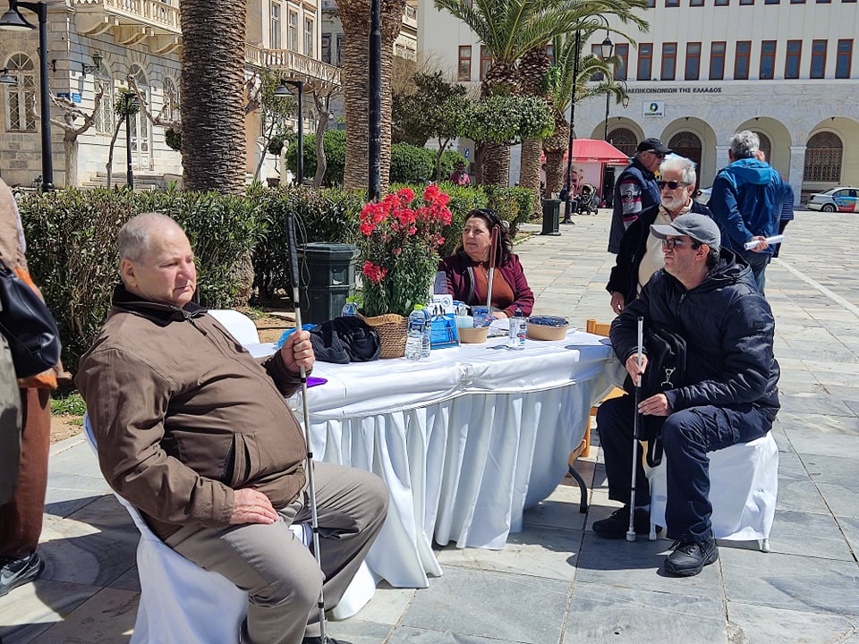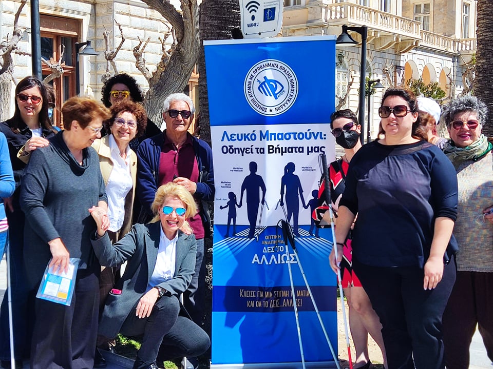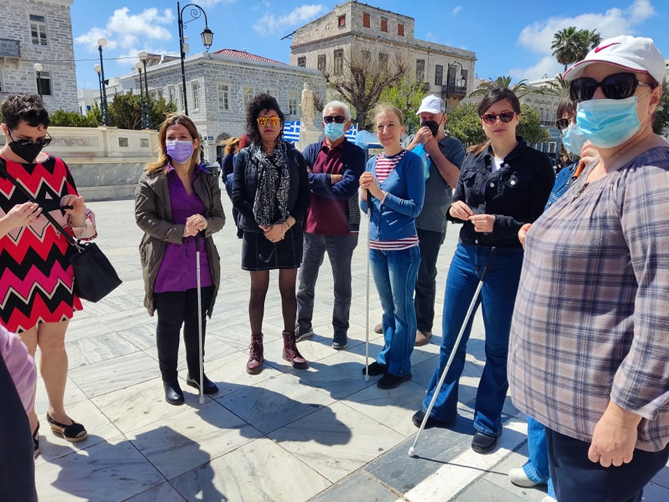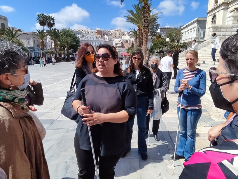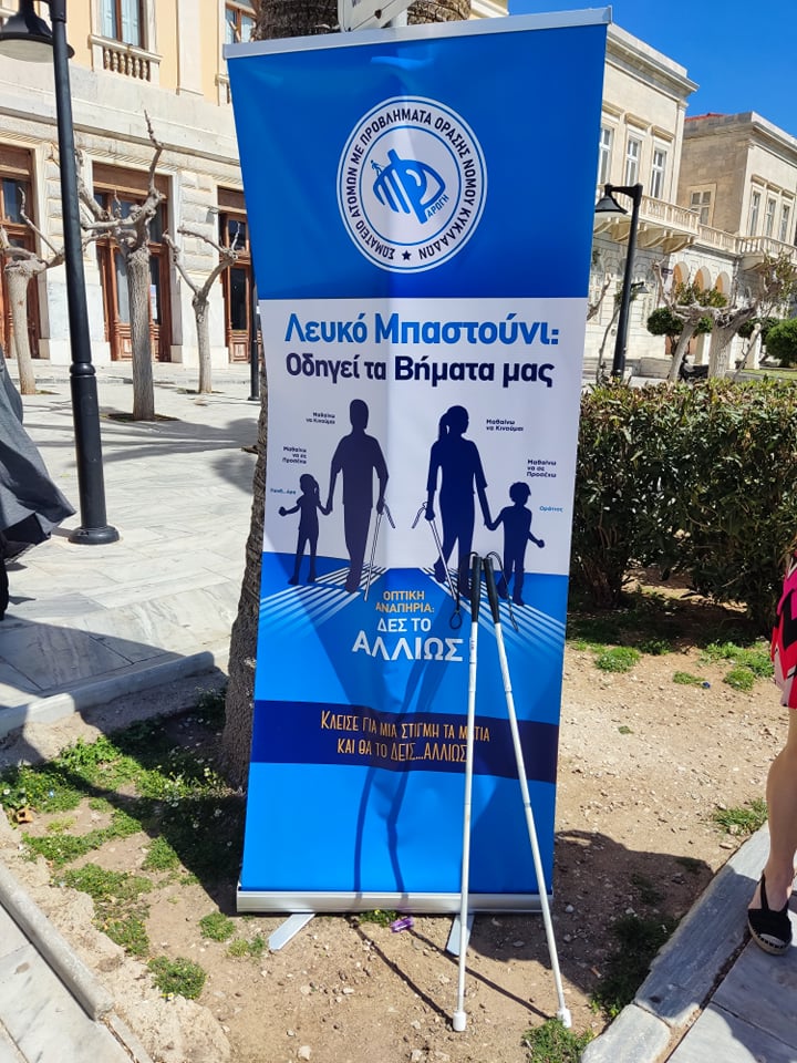 Μία πολύτιμη βιωματική δράση από το Σωματείο Ατόμων με Προβλήματα Όρασης νομού Κυκλάδων, ΑΡΩΓΗ αναπτύχθηκε με επιτυχία χθες το μεσημέρι στην Ερμούπολη και στην πλατεία Μιαούλη, στο πλαίσιο της οποίας εθελοντές είχαν την ευκαιρία να “διδαχθούν” τεχνικές συνοδείας για άτομα με προβλήματα όρασης.