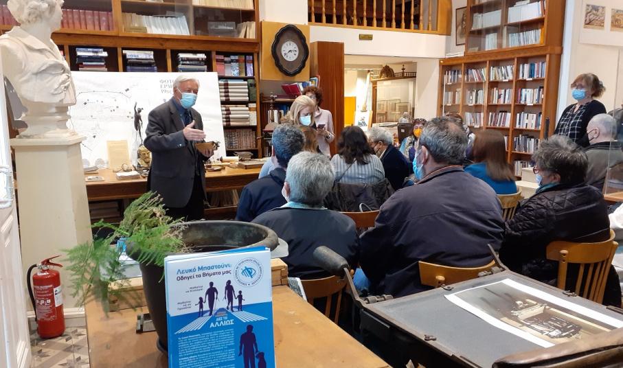 Τη Δευτέρα 11 Απριλίου, πραγματοποιήθηκε επίσκεψη των μελών της Αρωγής, στο Μουσείο Γραφής στη Δημοτική Βιβλιοθήκη Σύρου- Ερμούπολης με συμμετοχή στην εκδήλωση με τίτλο: “Η Διαχρονικότητα της Γραφής ως Μέσο Επικοινωνίας”. Ο δωρητής εκθεμάτων και συλλέκτης κ. Μιχαήλ Καϊρης και η κα. Κόσσιβα Χριστίνα από το Μορφωτικό Ίδρυμα της Εθνικής Τράπεζας, μετέβησαν από την Αθήνα στη Σύρο, ειδικά για το σκοπό αυτό. Η Εντεταλμένη Δημοτική Σύμβουλος θεμάτων Παιδείας κα. Ειρήνη Δράκου τίμησε με την παρουσία της την εκδήλωση, ενώ καθοριστική ήταν η συνεργασία και συμβολή της κας. Χαρούλας Σκαβάκη Διευθύντριας της Βιβλιοθήκης.