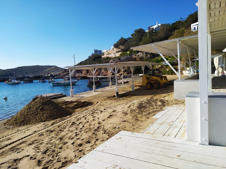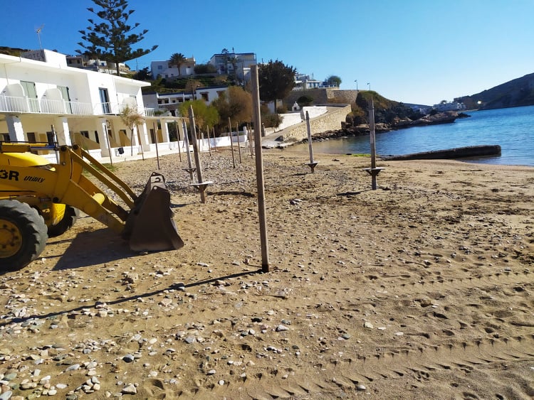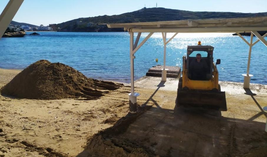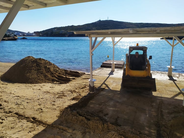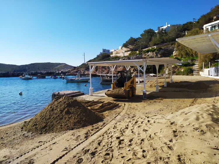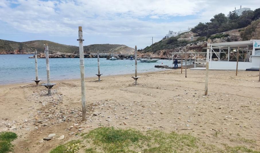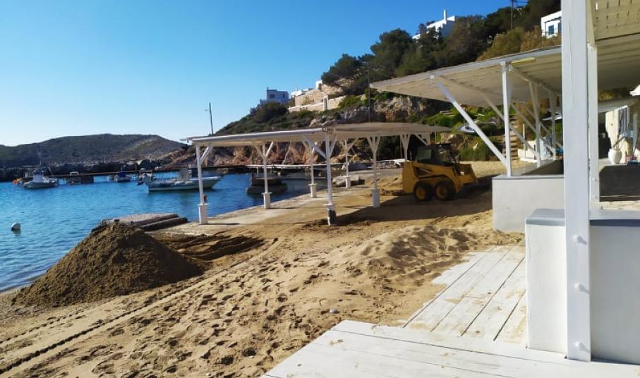 Η εικόνα της μικρής παραλίας μετά από έναν ιδιαίτερα έντονο χειμώνα είχε συγκεντρώσει αρκετά προβλήματα, με το βασικότερο, να αφορούσε στη “μεταφορά” της άμμου σε συγκεκριμένα σημεία. Αναλυτικότερα, αποτέλεσμα των έντονων καιρικών φαινομένων και του ισχυρού ανέμου καθ΄ όλη τη διάρκεια του χειμώνα ήταν να σχηματιστούν “λοφίσκοι” από άμμο στις επιχειρήσεις της περιοχής, η οποία “παρασύρθηκε” από το κύριο μέρος της παραλίας.