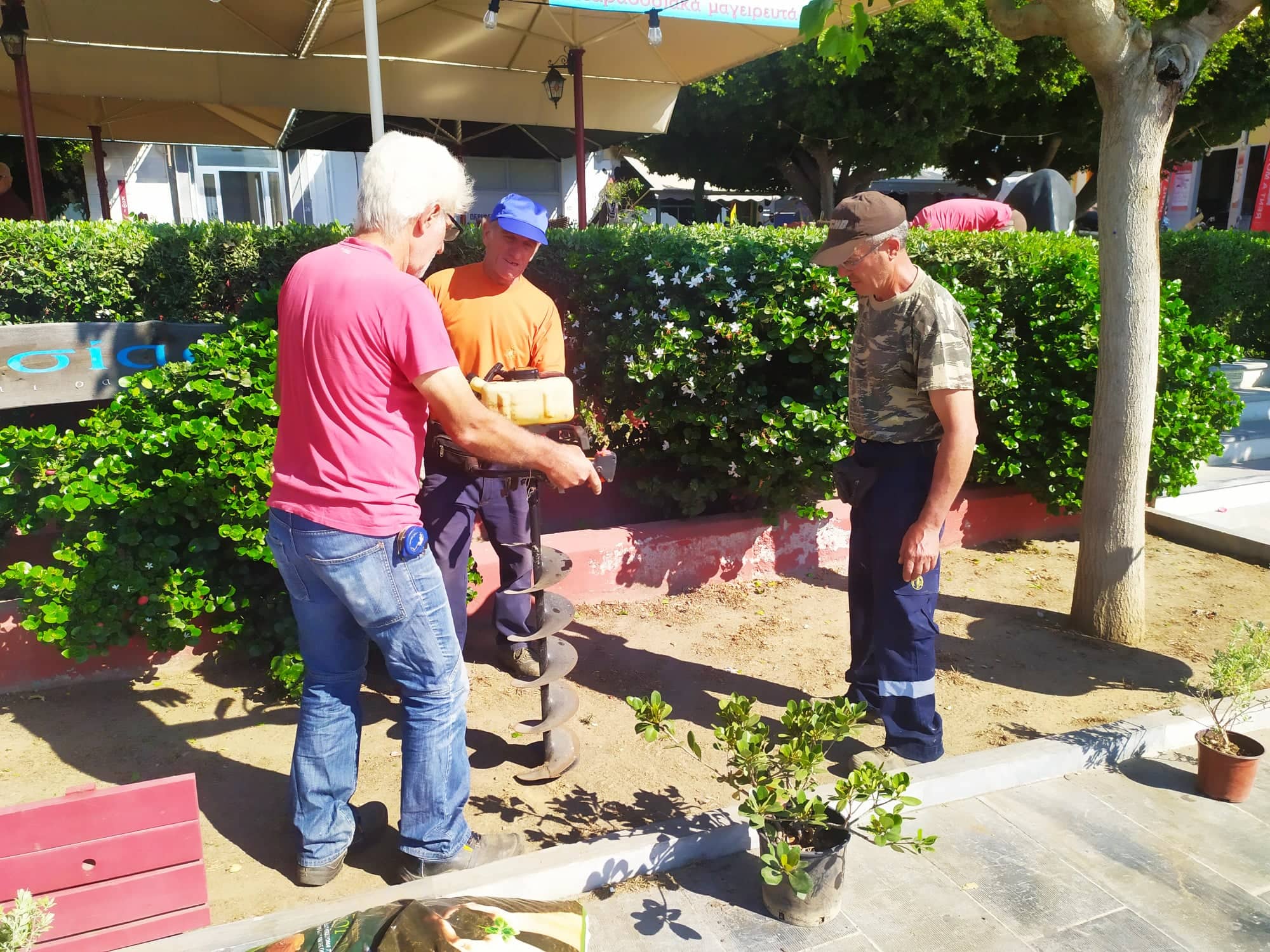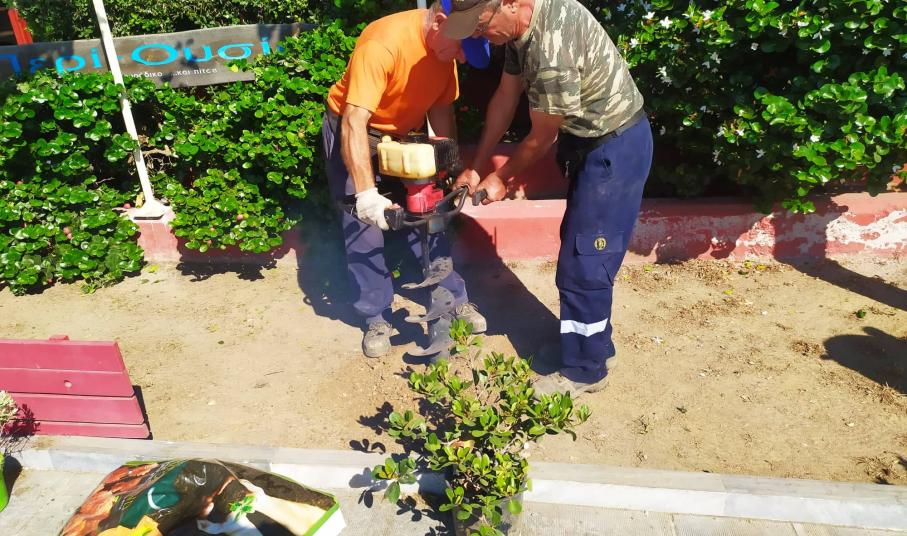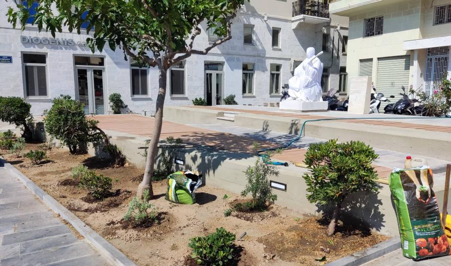 Εν όψει της εκδήλωσης των αποκαλυπτηρίων του αγάλματος το Σάββατο το μεσημέρι, οι εργάτες του Δήμου προχώρησαν σε φύτευση καλλωπιστικών φυτών και μικρών δέντρων ώστε να ομορφύνουν το σημείο, “πρασινίζοντάς” το.
