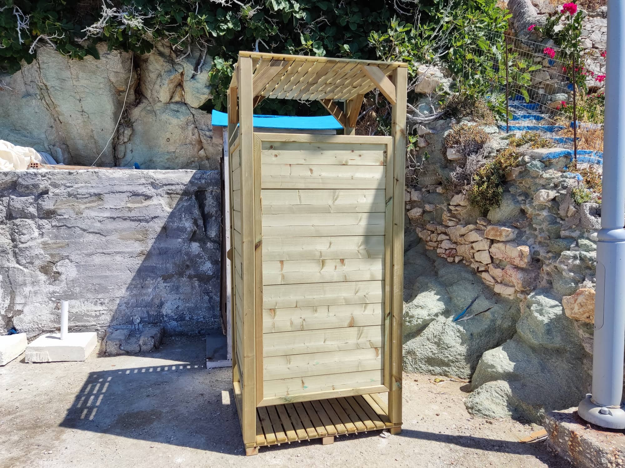 Ολοκληρώθηκε προ ημερών η επίστρωση της μεγάλης πλατφόρμας και τοποθετήθηκαν ομπρέλες και νέα καμπίνα