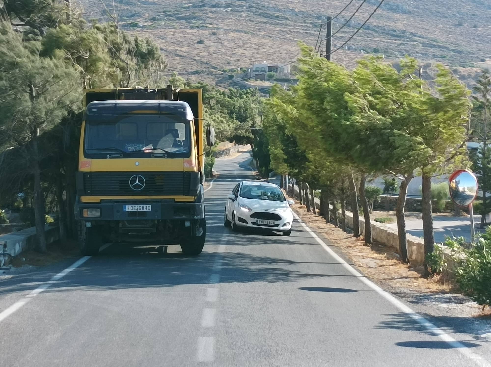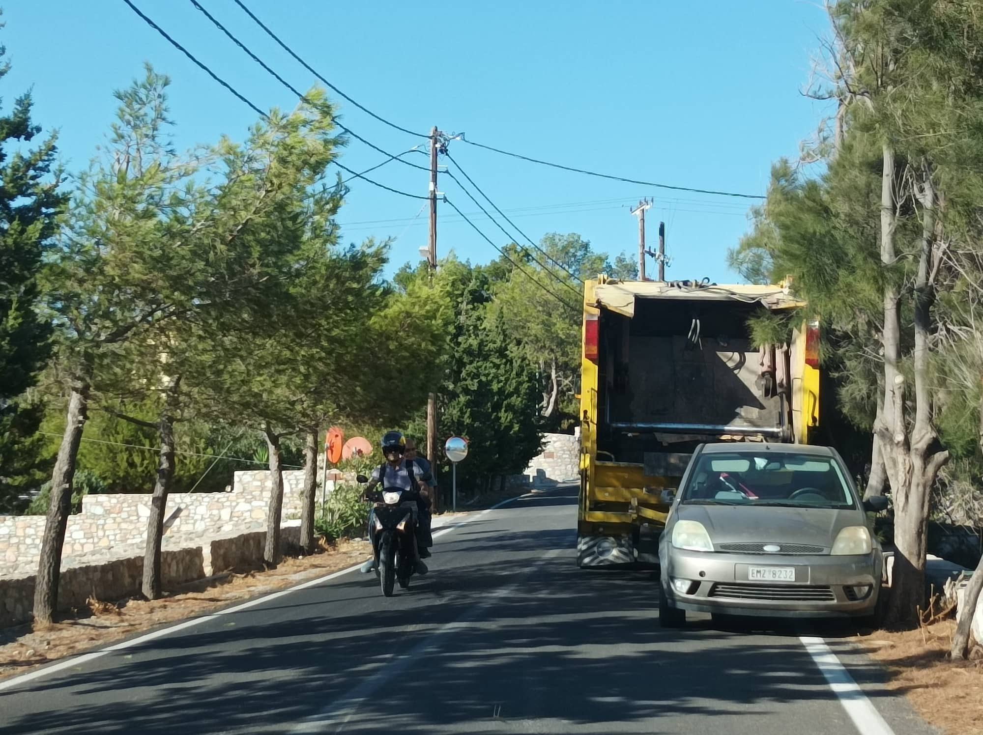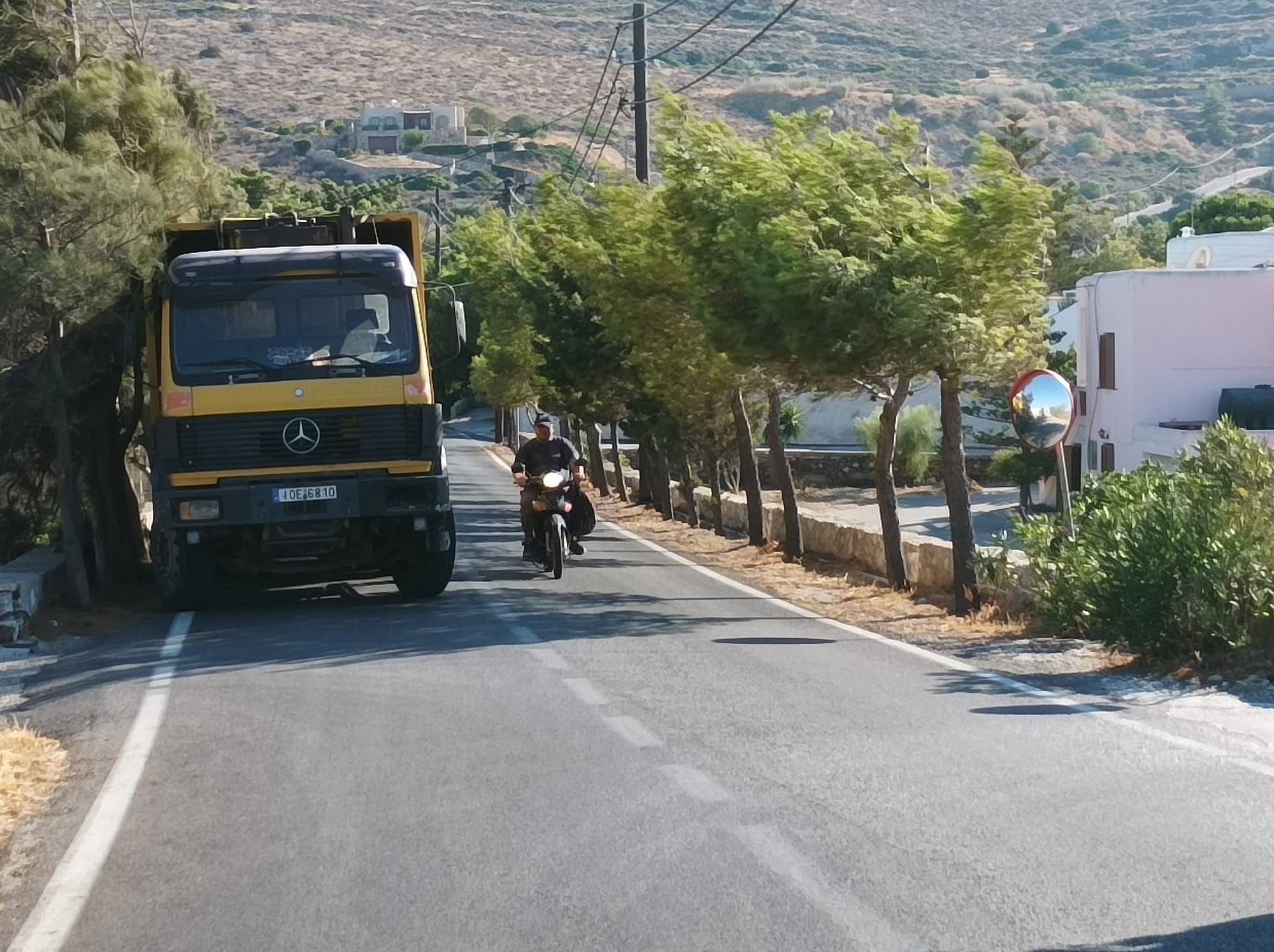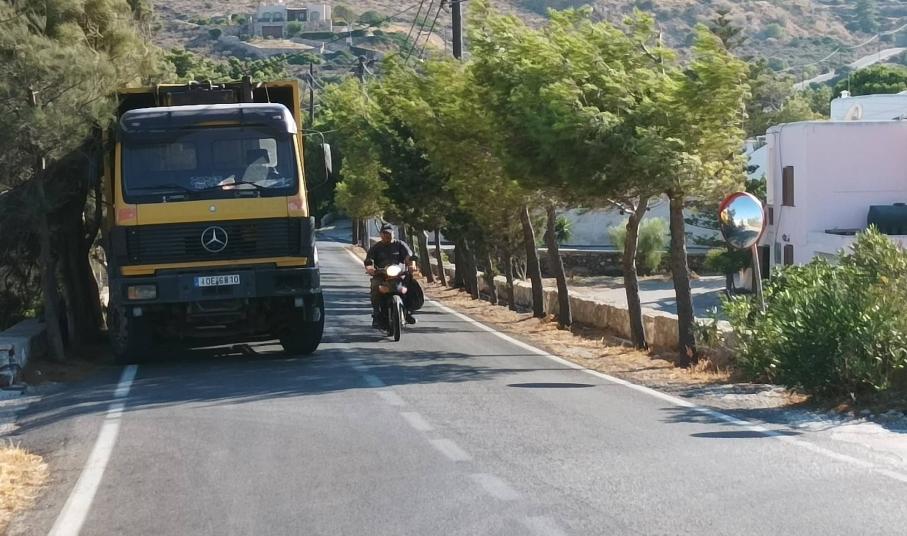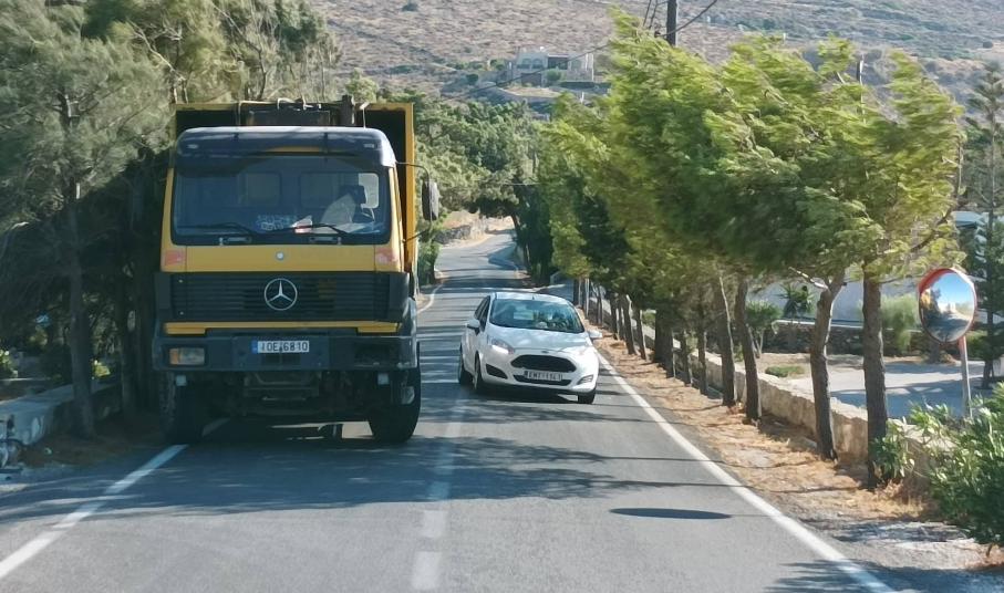 Σοβαρότατο πρόβλημα στην κυκλοφορία στον κεντρικό δρόμο της περιοχής Χρούσσα προκαλεί μεγάλο φορτηγό της ανακύκλωσης, το οποίο συστηματικά παραμένει σταθμευμένο στη μία κατεύθυνση, αναγκάζοντας τους διερχόμενους οδηγούς σε... μετωπικές συναντήσεις και επικίνδυνους ελιγμούς.