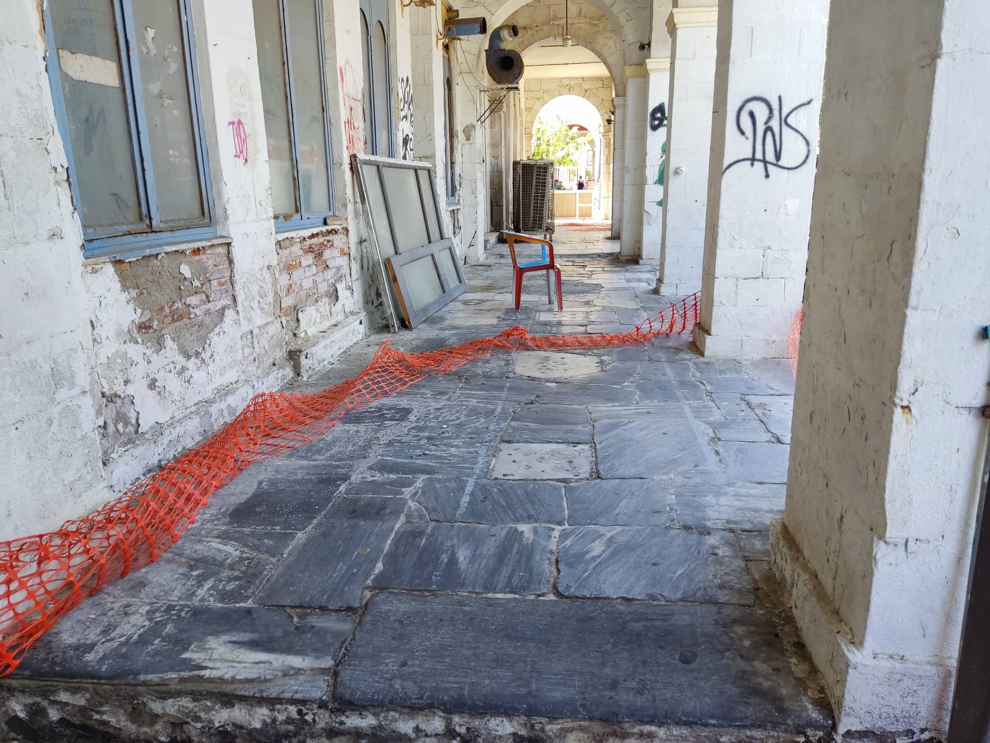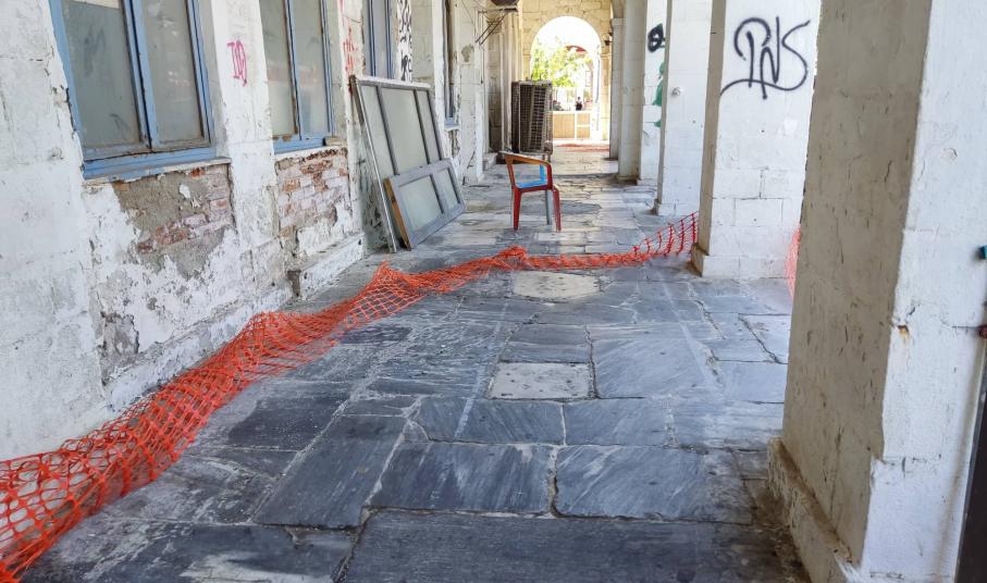 Απουσία αντανακλαστικών από την Τεχνική Υπηρεσία για την απαγόρευση διέλευσης από το επικίνδυνο κτίριο του κληροδοτήματος Άννης Κουτσοδόντη