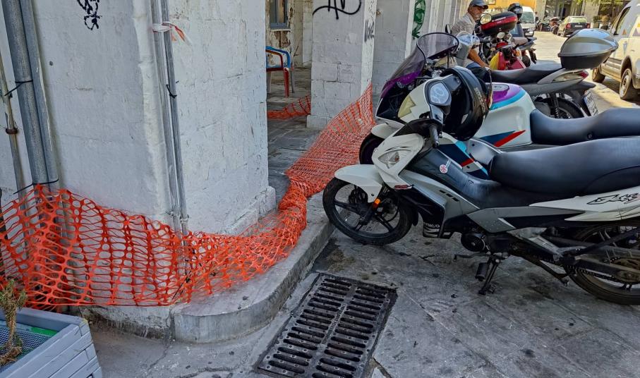Παράλληλα, διαπιστώνεται η στάθμευση οχημάτων και δικύκλων στην πρόσοψή του, γεγονός που αυξάνει την αγωνία για πρόκληση ζημιών σε αυτά.