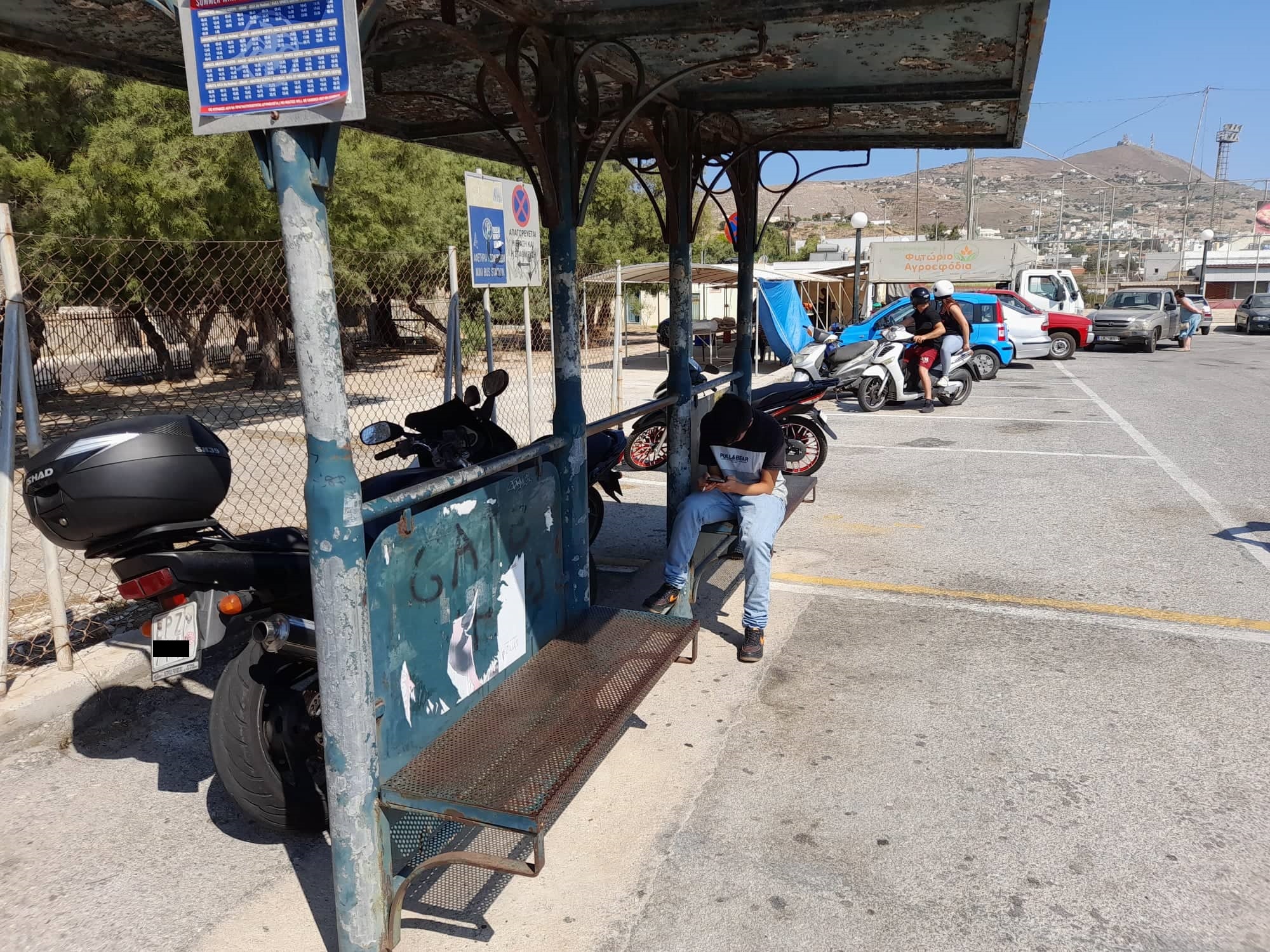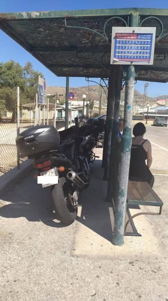 Στερώντας από τους επιβάτες των mini bus τον χώρο αναμονής και την απαιτούμενη προστασία από τις υψηλές θερμοκρασίες και τον καυτό ήλιο, αφήνουν τα δίκυκλα κάτω από τις στάσεις, με ό,τι αυτό συνεπάγεται για τους πολίτες που χρησιμοποιούν τη δημοτική συγκοινωνία.