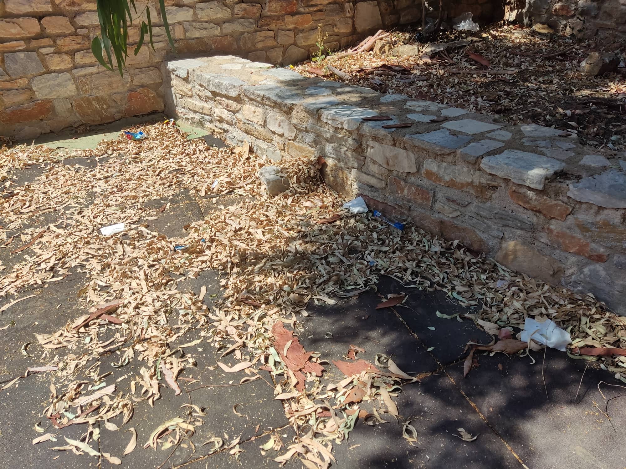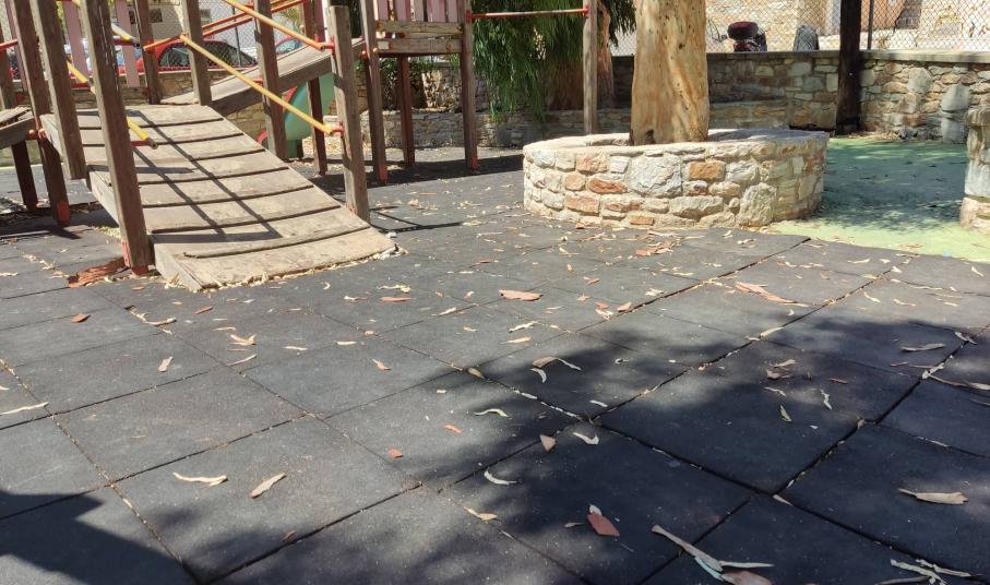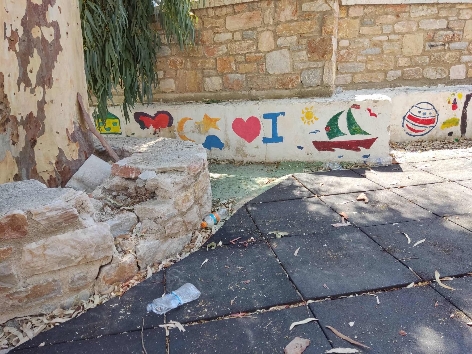 Συγκεκριμένα, ο χώρος δεν έχει καθαριστεί, με αποτέλεσμα να παραπέμπει σε μικρό σκουπιδότοπο, αφού κάθε γωνιά του “φιλοξενεί” σκουπίδια και ξερά φύλλα, ενώ επιπλέον, ο εξοπλισμός και τα παιχνίδια φέρουν σημαντικές φθορές.