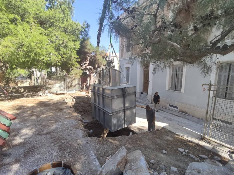 Τοποθετήθηκε το πρώτο σύστημα βυθιζόμενων κάδων στην περιοχή του 2ου Δημοτικού Σχολείου της Ερμούπολης, το μεσημέρι της Δευτέρας, μετά από την ολοκλήρωση των σχετικών εκσκαφικών εργασιών στην περιοχή.