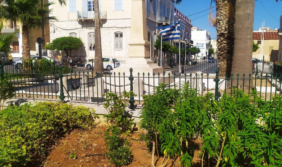 Η εικόνα της πλατείας Ηρώων έρχεται να αναβαθμίσει ένα από τα κεντρικότερα σημεία της Ερμούπολης, από το οποίο καθημερινά διέρχονται δεκάδες πολίτες.