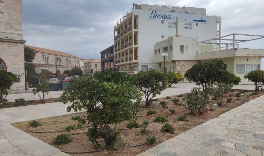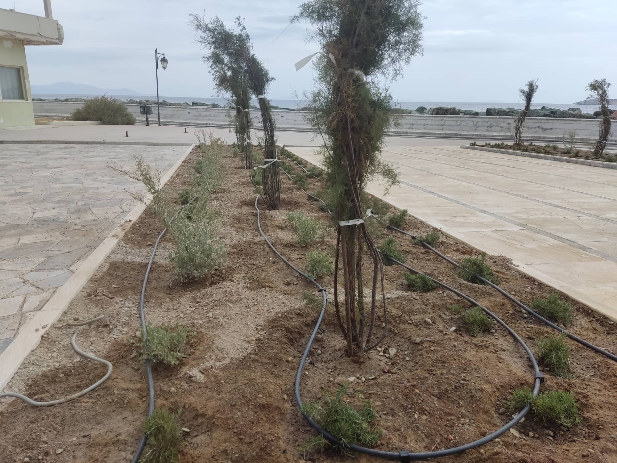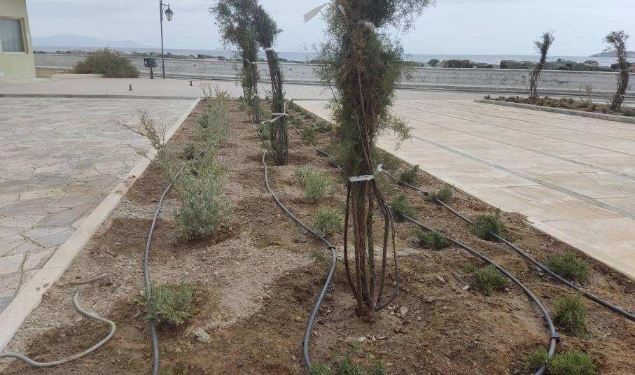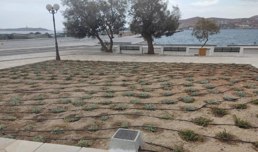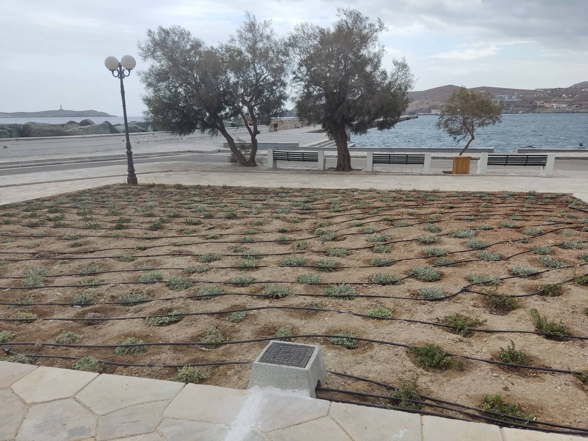 Συγκεκριμένα, τοποθετήθηκαν καλλωπιστικά φυτά με στόχο την ανάπτυξη πρασίνου στην περιοχή, που αποτελεί ένα σταθερό μέρος περιπάτου και αναψυχής κυρίως για τους πολίτες που κατοικούν στην Ερμούπολη και το ιστορικό κέντρο.