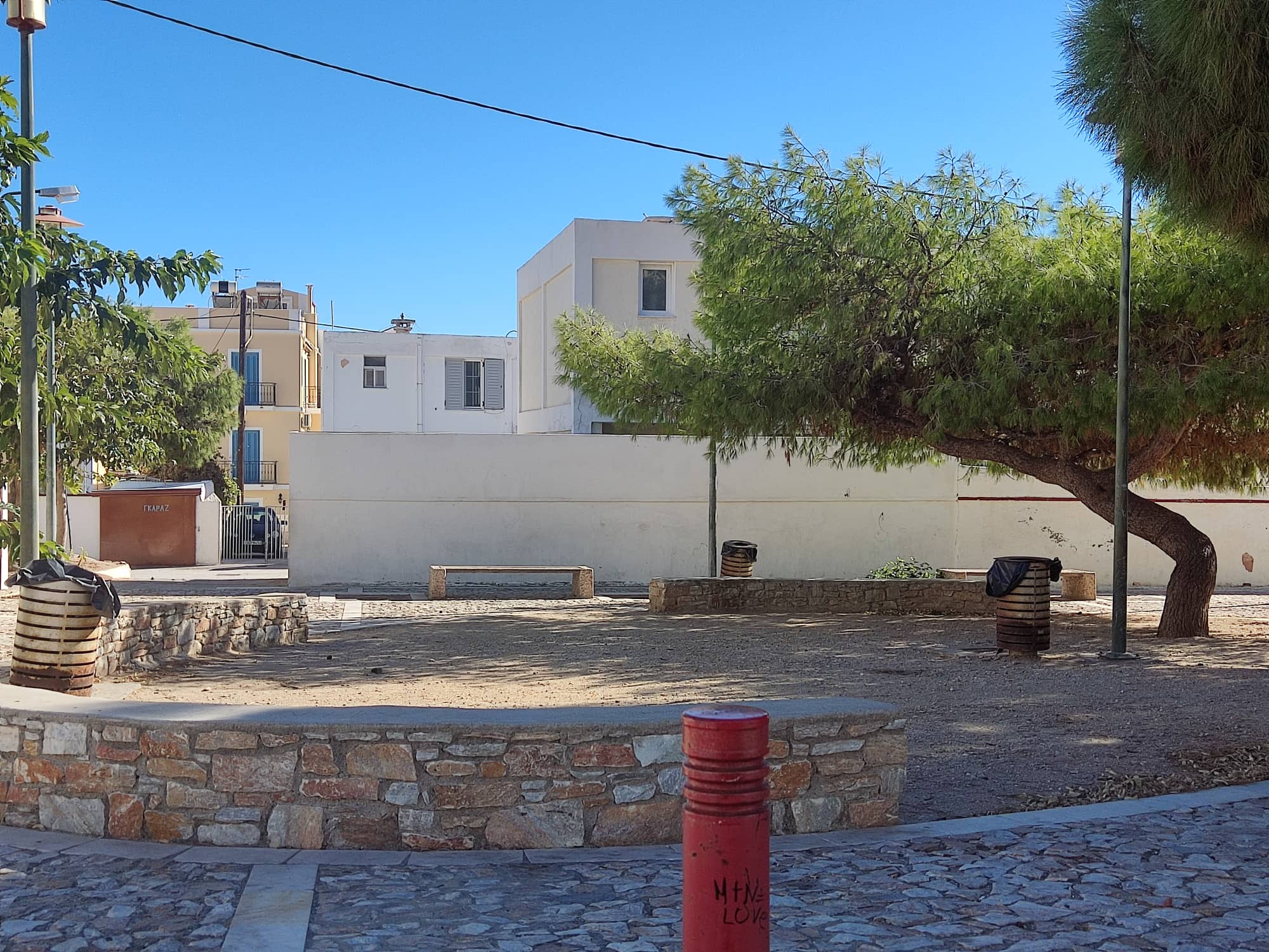 Σε αυτόν τον χώρο, η Κοινότητα Ερμούπολης προτείνει να δρομολογηθεί έργο ανάπλασης και να διαμορφωθεί μία παιδική χαρά, καθώς ο χώρος και εν γένει η γειτονιά κρίνεται ασφαλής για την ψυχαγωγία και το καθημερινό παιχνίδι των παιδιών.