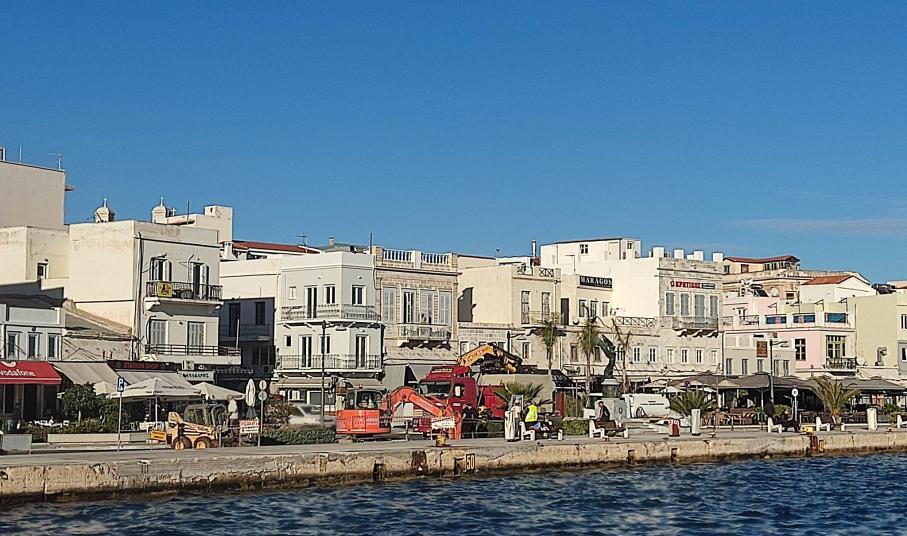 Σε εξέλιξη από χθες οι εργασίες τοποθέτησης συστήματος υπόγειων κάδων στην παραλιακή ζώνη της Ερμούπολης