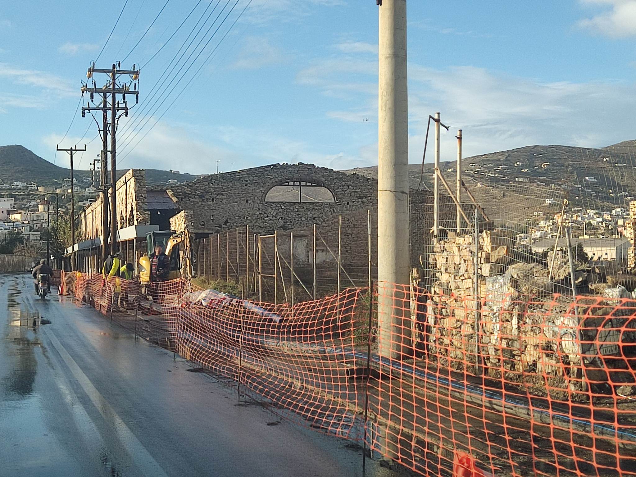 Η τοποθέτηση νέου αγωγού σε όλο το τμήμα του δρόμου από το ύψος του Αθλητικού Κέντρου μέχρι και το ύψος του εργοστασίου της ΔΕΗ κρίθηκε επιβεβλημένη και προχωρά με γοργούς ρυθμούς.