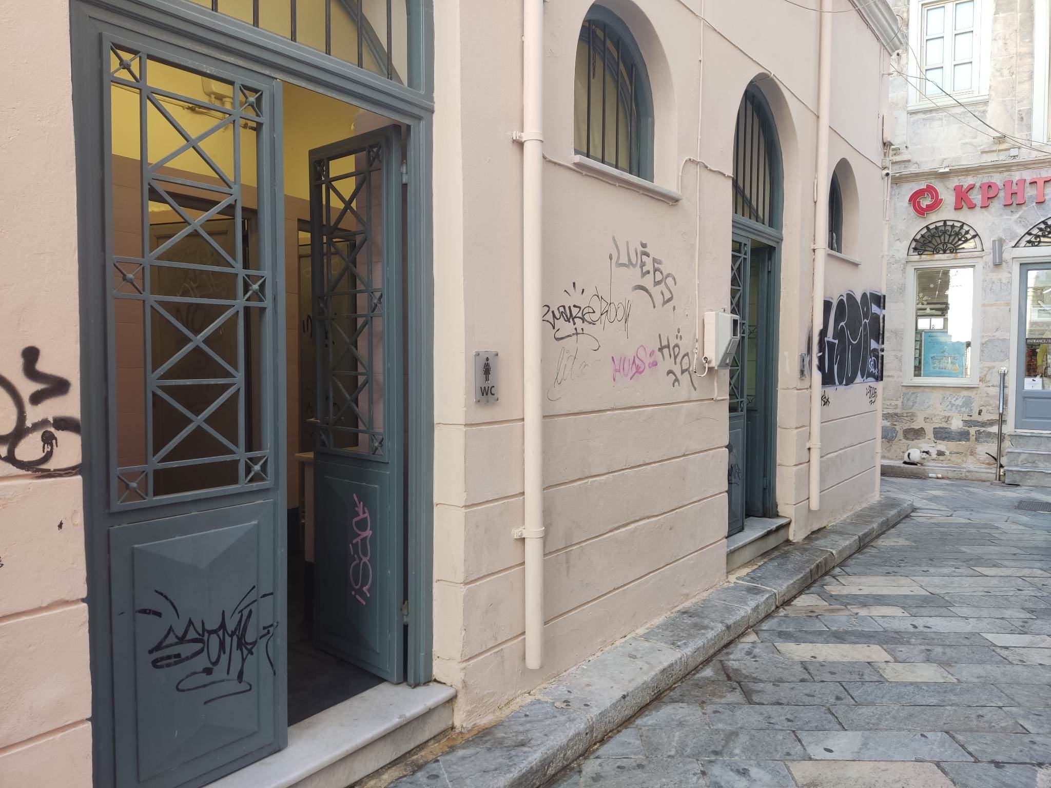 Ειδικότερα, ο μικρός πεζόδρομος που συνδέεται με την οδό Πρωτοπαπαδάκη και οδηγεί στις δημοτικές τουαλέτες διακρίνεται από έντονη δυσοσμία, αρκετή βρωμιά στην είσοδο των wc, αλλά και από απορρίμματα που “πλημμυρίζουν” τους μικρούς κι εξίσου βρώμικους κάδους.