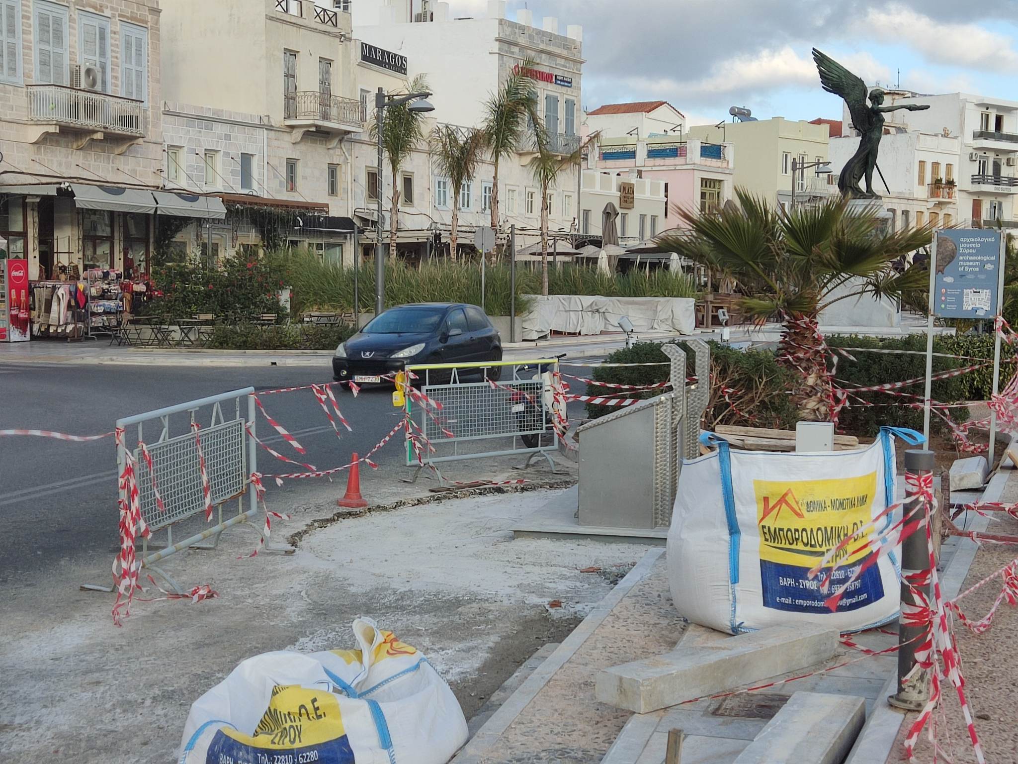 “Ανοικτό παραμένει μέχρι σήμερα το τμήμα που περιβάλλει τα συστήματα βυθιζόμενων κάδων στο παραλιακό τμήμα της Ερμούπολης, με ό,τι αυτό συνεπάγεται για την εικόνα της περιοχής ενόψει των Χριστουγέννων.
