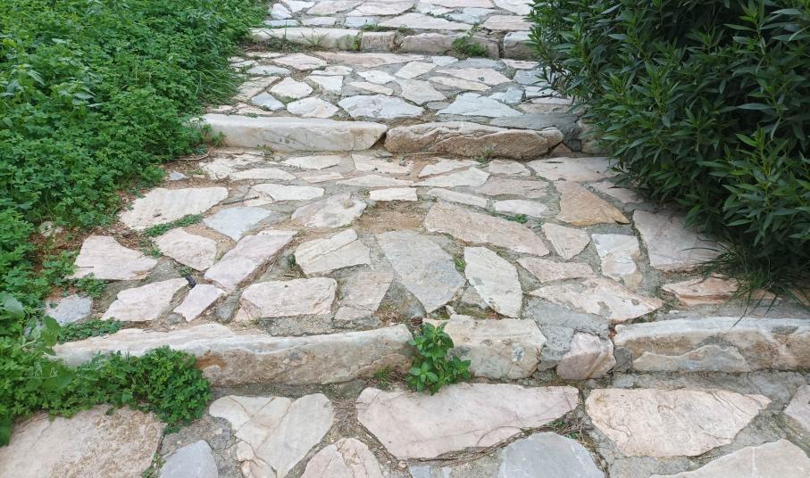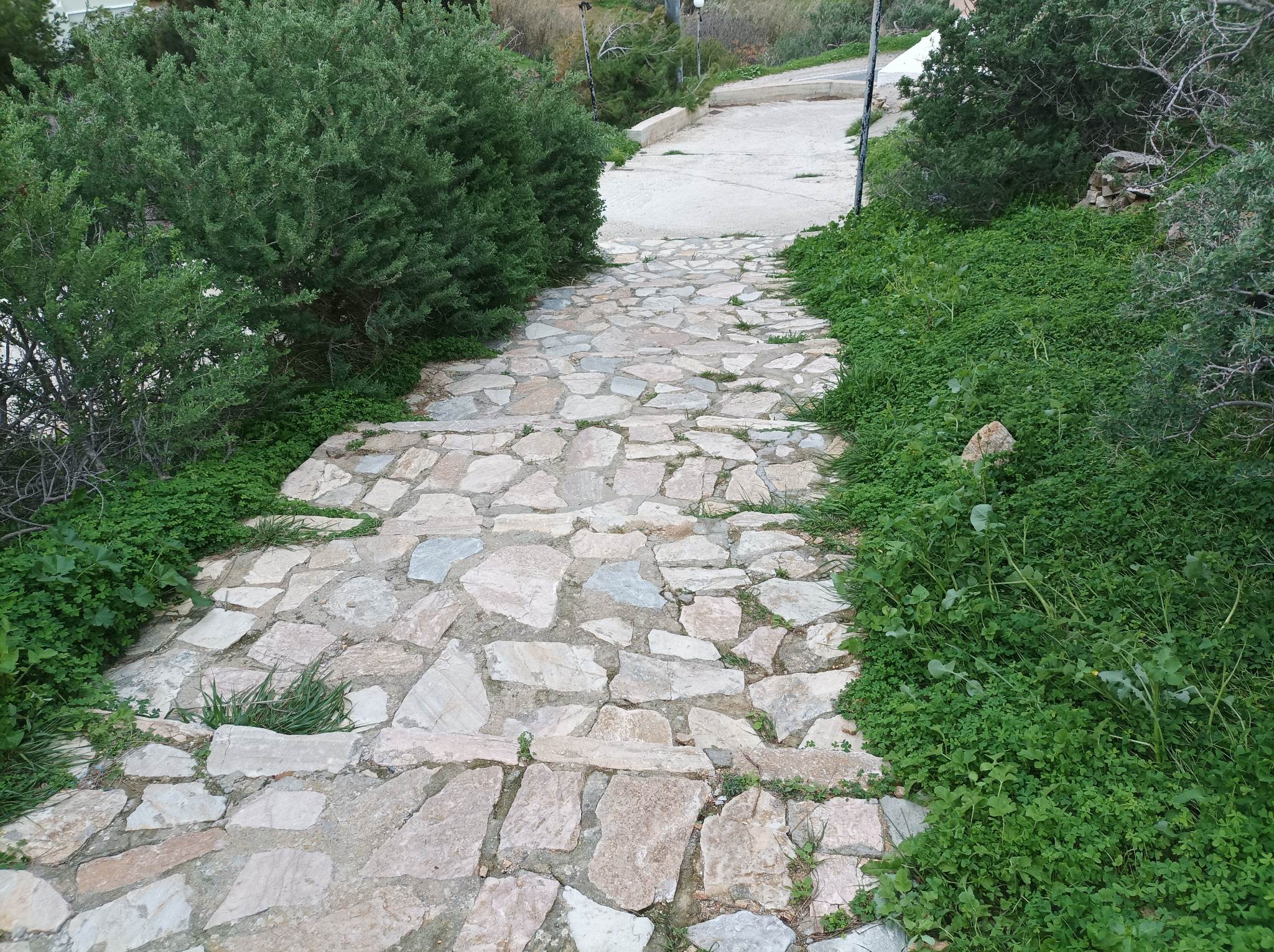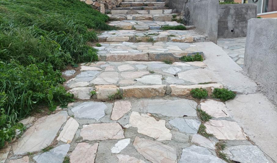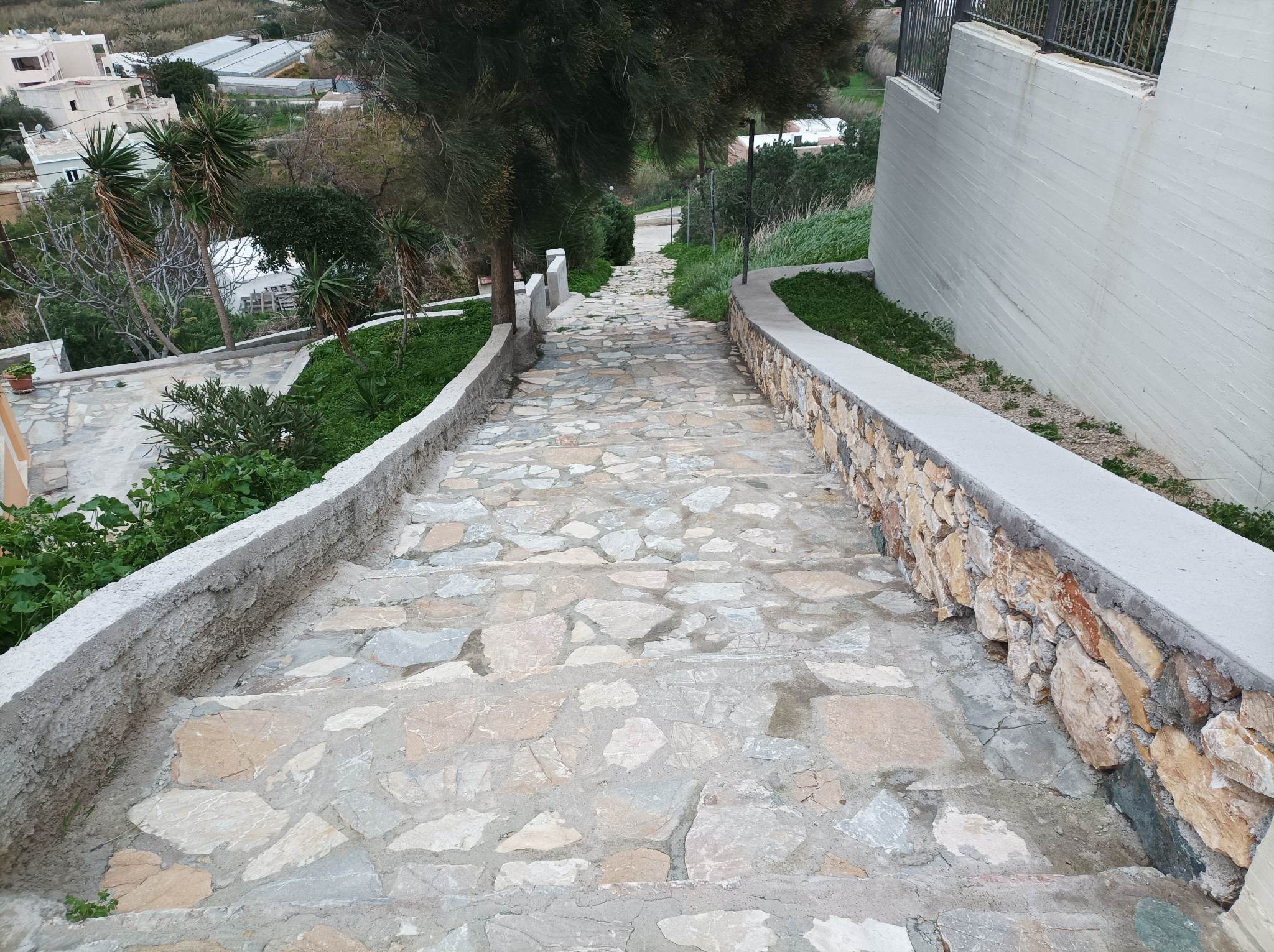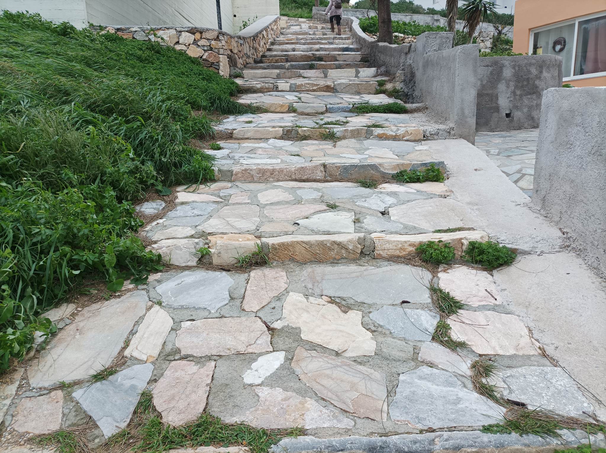 Στα σκαλοπάτια που εξυπηρετούν τα παιδιά από και προς το νέο Δημοτικό Σχολείο Βάρης