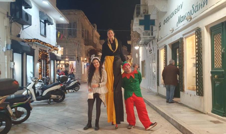 Στη μαγεία των Χριστουγέννων είχαν την ευκαιρία να ταξιδέψουν μικροί και μεγάλοι που βρέθηκαν στον πεζόδρομο την παραμονή της μεγάλης θρησκευτικής γιορτής, καθώς ο εμπορικός κόσμος είχε επιφυλάξει όμορφες εκπλήξεις για όλους. Εκτός από τη χριστουγεννιάτικη μουσική, ο Εμπορικός Σύλλογος Σύρου είχε φροντίσει να υπάρχουν διασκεδαστές για μικρά παιδιά, αλλά και ξυλοπόδαρος. Με αυτή την πρωτοβουλία και έχοντας εν μέρει πεζοδρομήσει την οδό Σταματίου Πρωίου στο αρχικό τμήμα της, οι πολίτες μπορούσαν να προχωρήσουν ευχάριστα σε αγορές και να απολαύσουν λίγες στιγμές ξεγνοιασιάς.