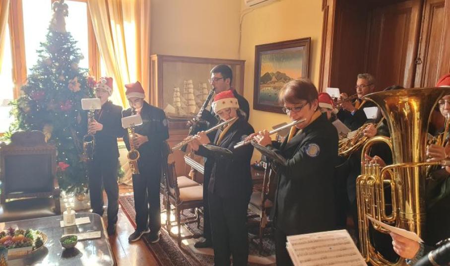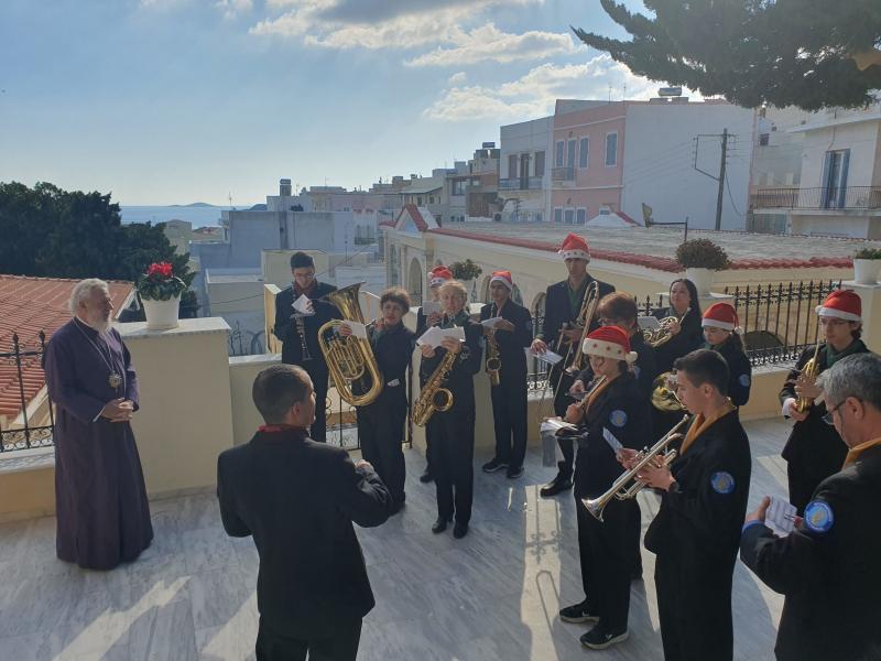 Ειδικότερα, για μια ακόμη χρονιά, τα μέλη της Φιλαρμονικής του Δήμου Σύρου – Ερμούπολης “τραγούδησαν” τα κάλαντα των Χριστουγέννων, μαγεύοντας με την ποιότητά τους όλον τον κόσμο που το πρωί του Σαββάτου βρέθηκε στην Ερμούπολη. Με αφετηρία τους την πλατεία Μιαούλη επισκέφθηκαν τον Δήμαρχο, Νίκο Λειβαδάρα, όπου στο γραφείο του τους υποδέχθηκαν αρκετοί αιρετοί, χειροκροτώντας και ευχαριστώντας τους για την πολύτιμη δουλειά που κάνουν. Η Φιλαρμονική της Σύρου διατηρεί τη θέση της στην πρώτη γραμμή σε κάθε εορταστική περίοδο, χαρίζοντας νότες αισιοδοξίας και χαράς σε μία συγκυρία που έχει δυσκολέψει αρκετούς συμπολίτες μας. Αμέσως μετά, η Φιλαρμονική κατευθύνθηκε στο Επισκοπικό Μέγαρο πλησίον του Ι.Ν. Μεταμορφώσεως, όπου τους υπέροχους μουσικούς υποδέχθηκε και χαιρέτησε ο Σεβασμιώτατος Μητροπολίτης Σύρου, κ. Δωρόθεος Β΄. Τα χριστουγεννιάτικα κάλαντα έφεραν συγκίνηση σε όλους, ενώ στον Μητροπολίτη ευχές απηύθυναν και εκπρόσωποι τοπικών Αρχών, Συλλόγων, Φορέων, καθώς επίσης αντιπροσωπείες μαθητών από τη Β΄ τάξη του Γυμνασίου των Εκπαιδευτηρίων ΔΕΛΑΣΑΛ Σύρου και από τον Παιδικό Σταθμό της Μητρόπολης “Στην Παλάμη του Θεού”.