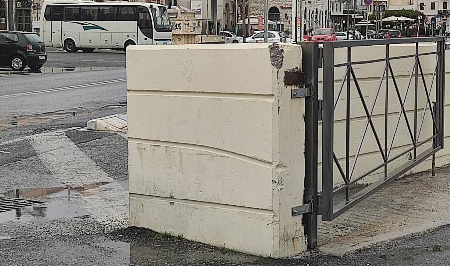 Ειδικότερα, στην είσοδο του λιμανιού, το μικρό τοιχίο που συγκρατεί τα κιγκλιδώματα, φέρει σημαντικές φθορές, μικρά τμήματά του έχουν αποκολληθεί, ενώ ακόμη, “φλούδες” από το χρώμα με το οποίο ήταν βαμμένο, “αγνοούνται”.