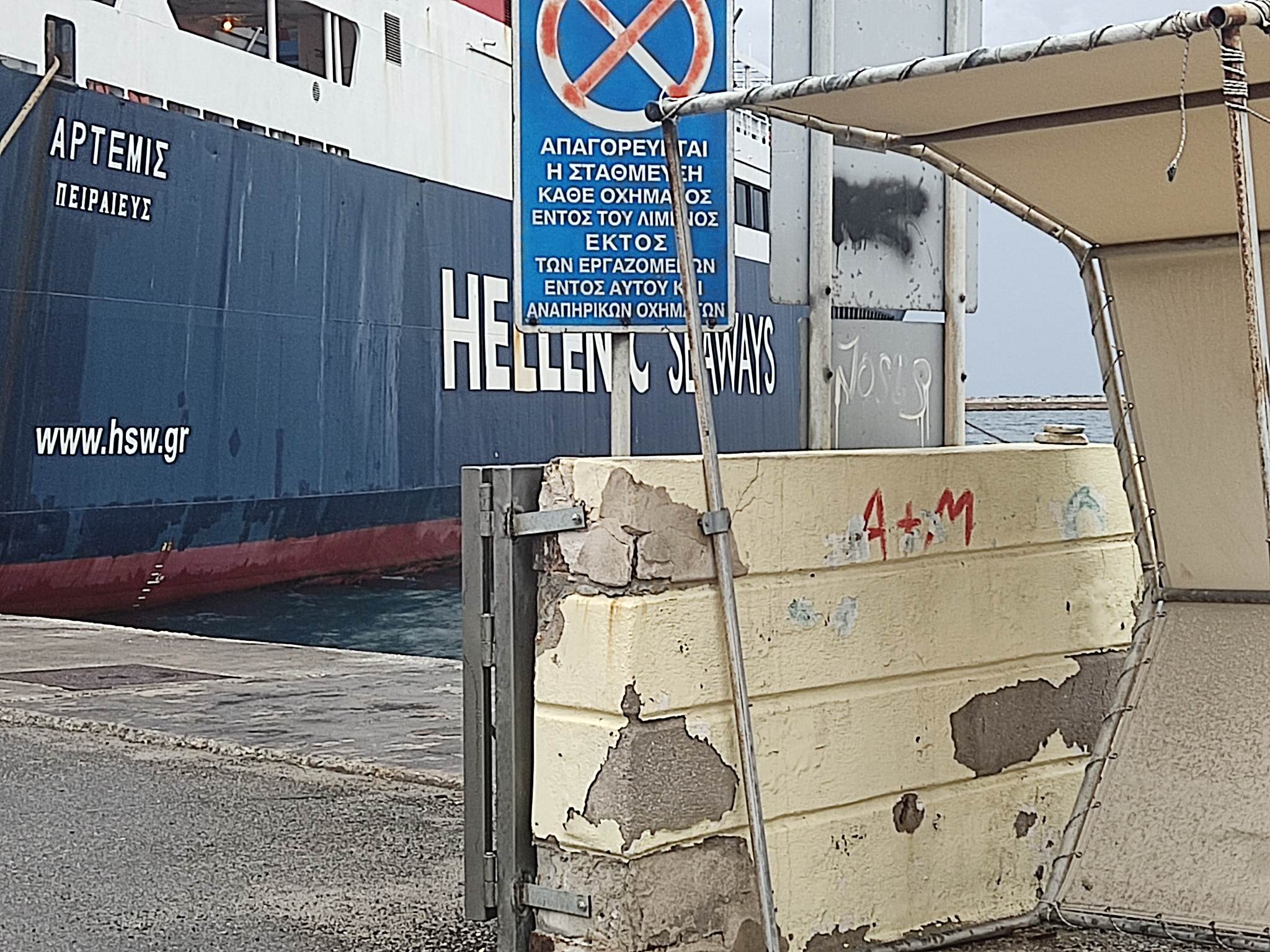 Δεδομένης της αναβάθμισης που δέχθηκαν προ καιρού τα στέγαστρα αναμονής επιβατών πλοίων, τα οποία και αποτελούν συνέχεια της εν λόγω περίφραξης, κρίνεται αναγκαία η ανάπτυξη εργασιών καθαρισμού και συντήρησης από την αρμόδια πλευρά.