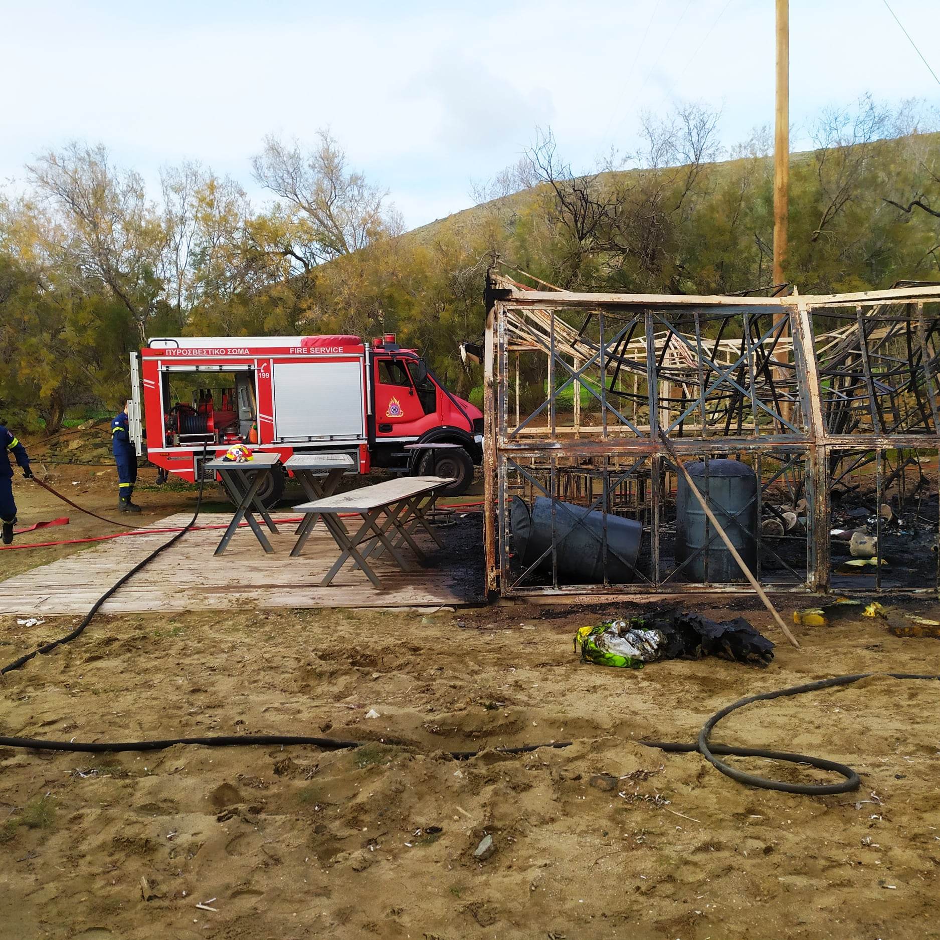 Σύμφωνα με ασφαλείς πληροφορίες, η φωτιά κατέστρεψε το ξύλινο υπόστεγο το οποίο "στέγαζε" εξοπλισμό για θαλάσσια σπορ.