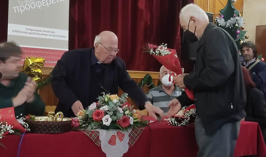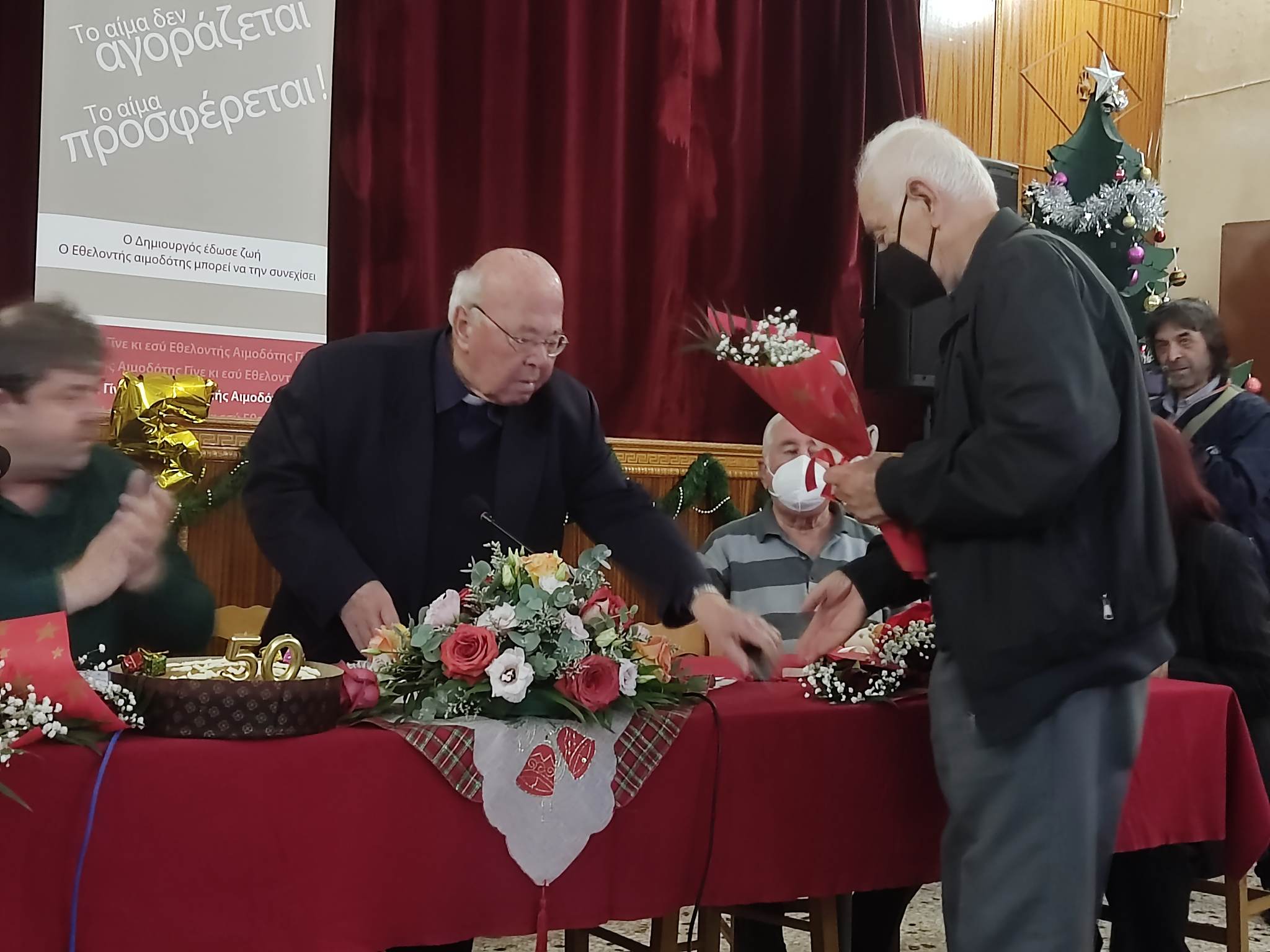 Τέλος, τον π. Αντώνιο Βουτσίνο τίμησε ο Δήμαρχος, απονέμοντάς του μία τιμητική πλακέτα, ενώ συγκινητική υπήρξε η στιγμή που ένα μικρό παιδί προσέφερε λουλούδια στον ίδιο, εκπροσωπώντας τη νέα γενιά των αιμοδοτών.