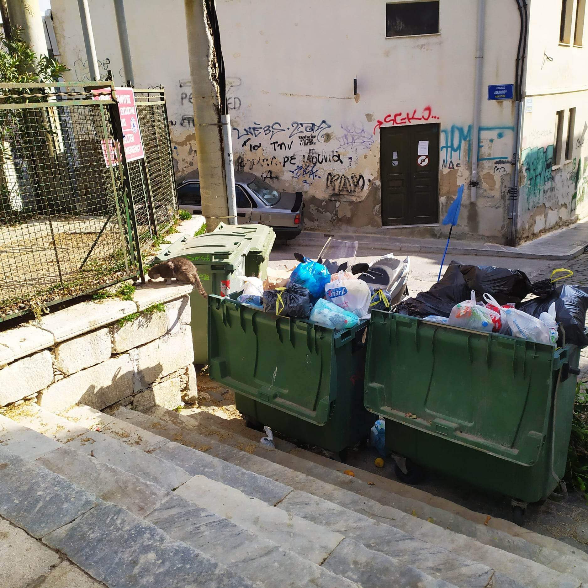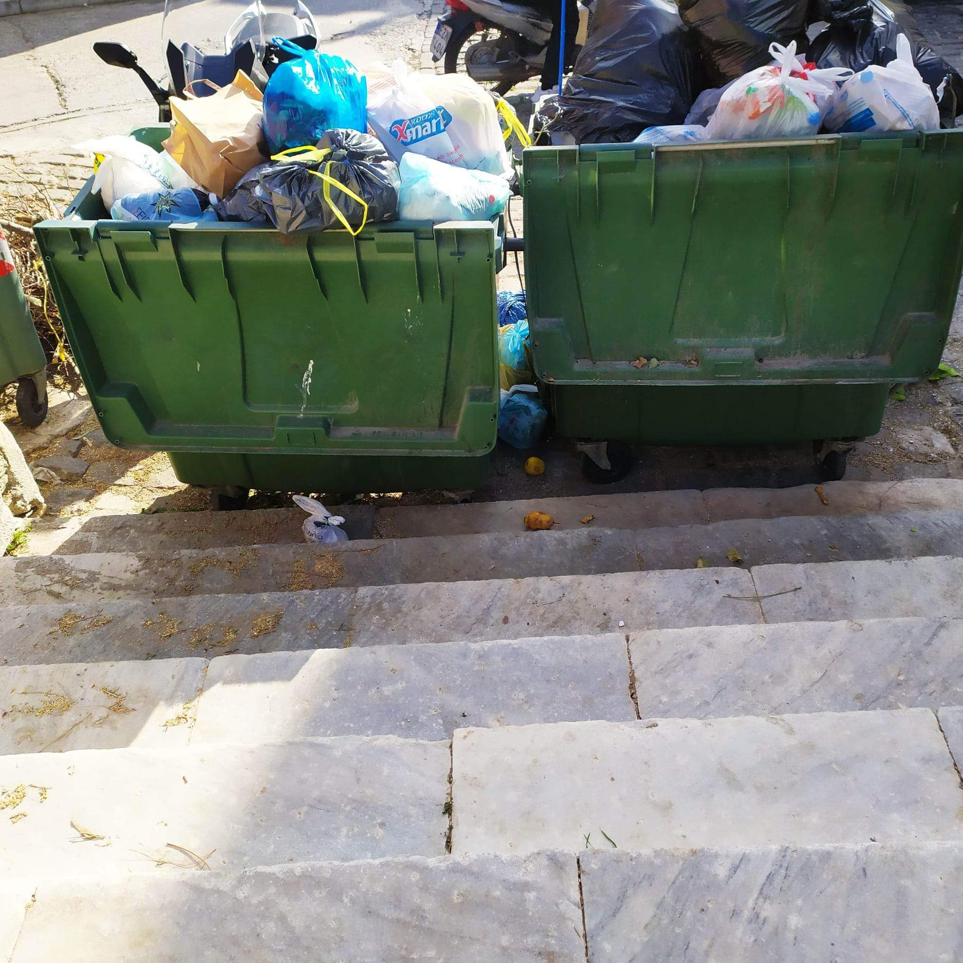 Η κατάσταση που επικρατούσε μέχρι πρότινος αφορούσε σε “πλημμυρισμένους” κάδους από απορρίμματα, αλλά και σε μικρά “βουνά” σκουπιδιών, πλησίον αυτών.