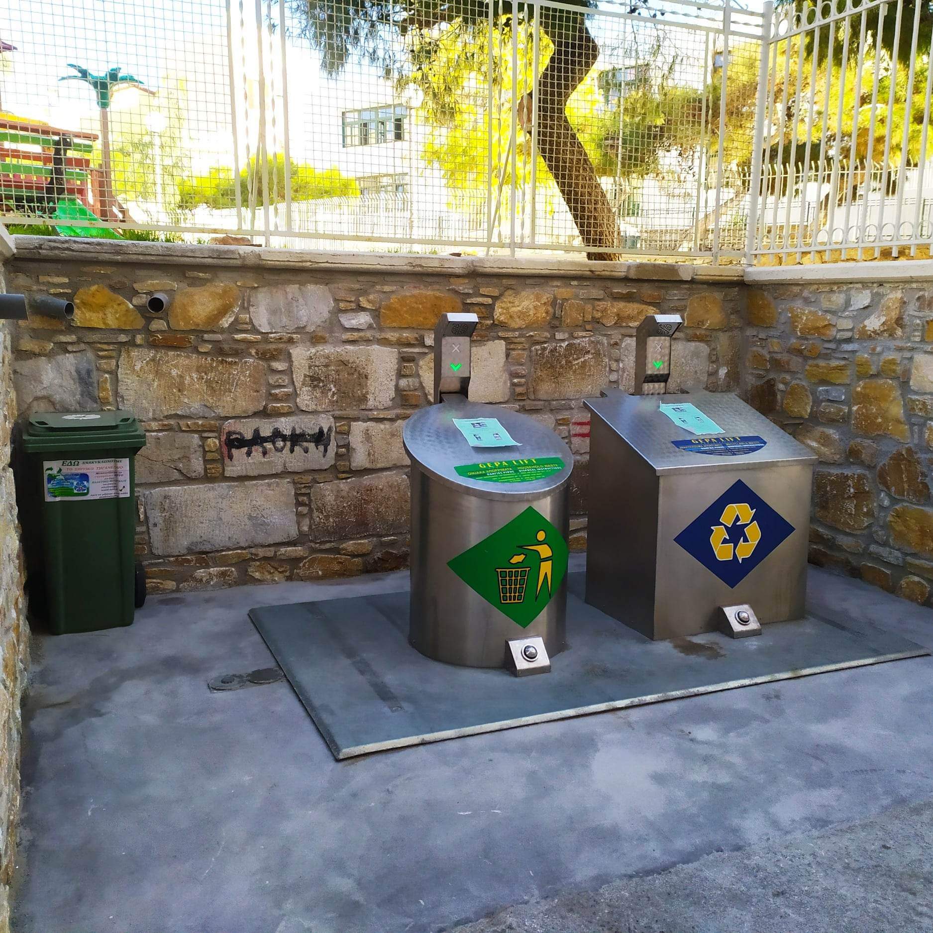 Σημειώνεται πως ο μικρός πράσινος κάδος δίπλα από το σύστημα, αφορά στην απόρριψη λαδιού, ενώ θα τοποθετηθεί και δοχείο συλλογής γυαλιού για την προώθηση της ανακύκλωσης.