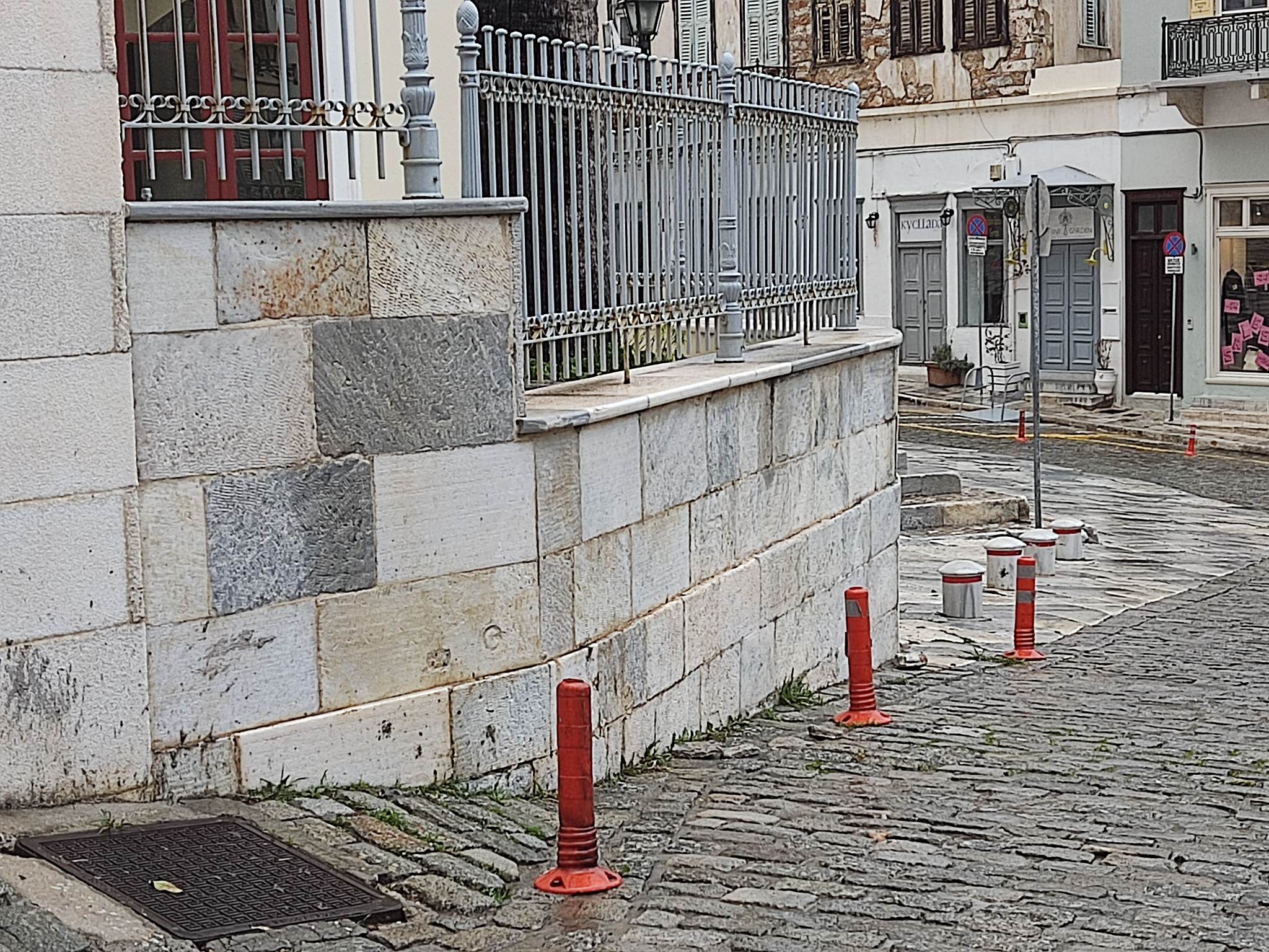 Ανομοιόμορφη εικόνα αναφορικά με τα πλαστικά κολωνάκια καταγράφεται στο ιστορικό κέντρο της Ερμούπολης, αφού ο Δήμος δεν διαθέτει ενιαία πρακτική σχετικά με τις προμήθειες ως φαίνεται, με αποτέλεσμα η ακαλαισθησία να κυριαρχεί σε όλους τους δρόμους.