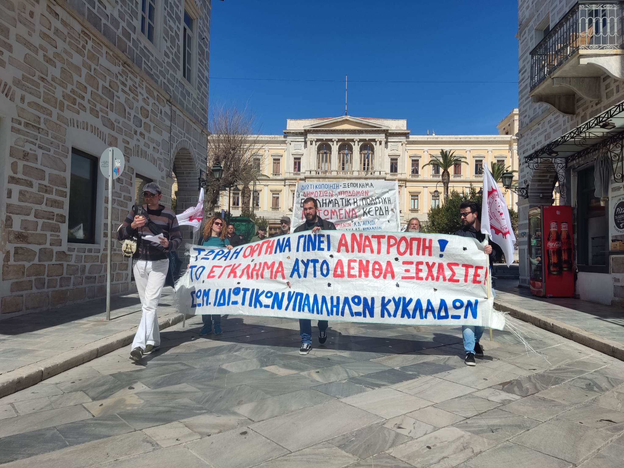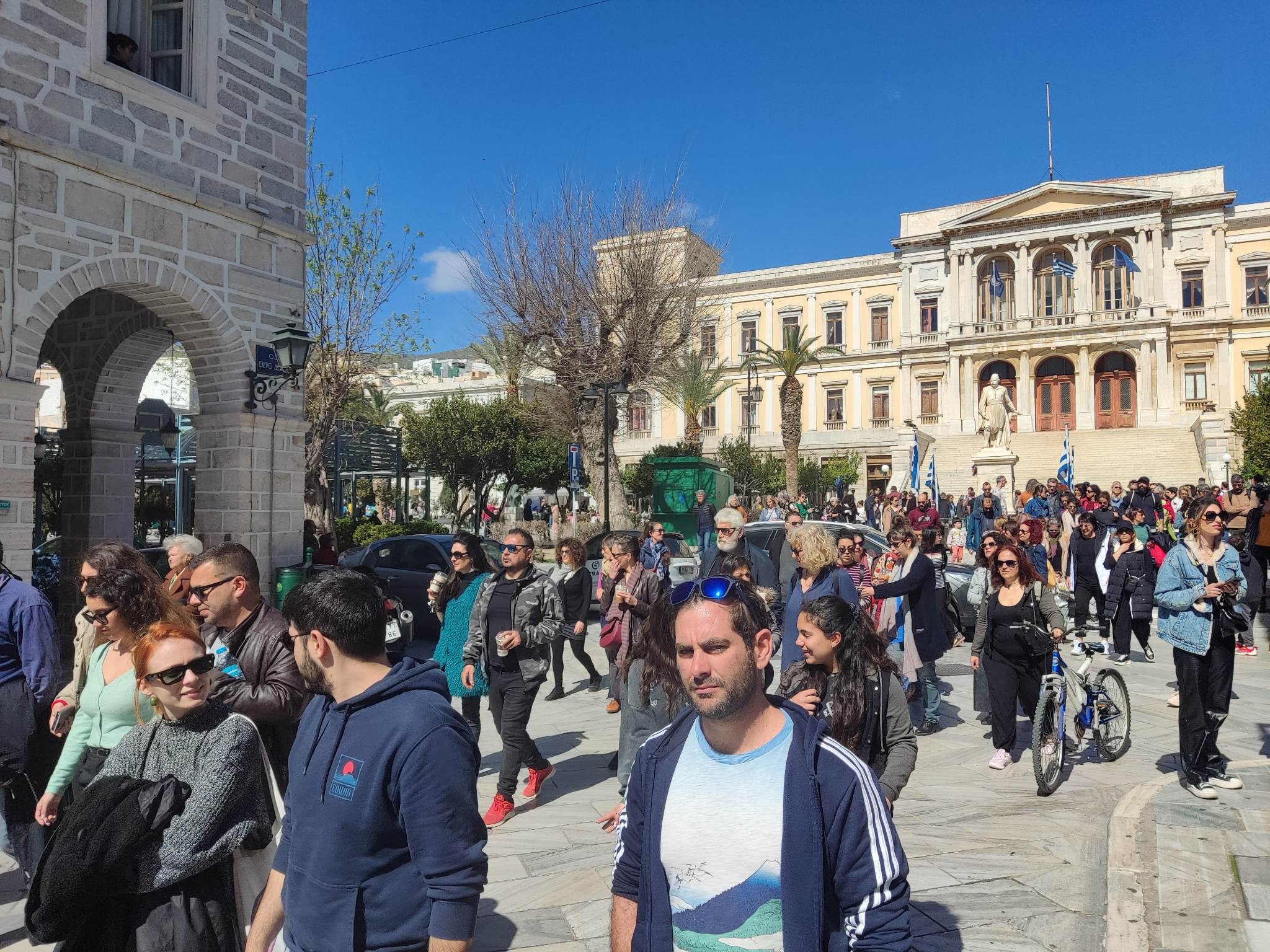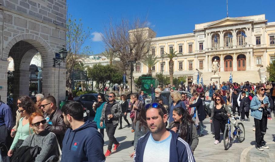 Δυναμικά διαδήλωσαν και χθες στο κέντρο της Ερμούπολης, πολίτες της Σύρου, ενάντια στην κυβέρνηση, με φόντο την τραγωδία στα Τέμπη που στέρησε τη ζωή σε πολλούς ανθρώπους, μετά τη σύγκρουση δύο αντίθετα διερχόμενων τρένων.