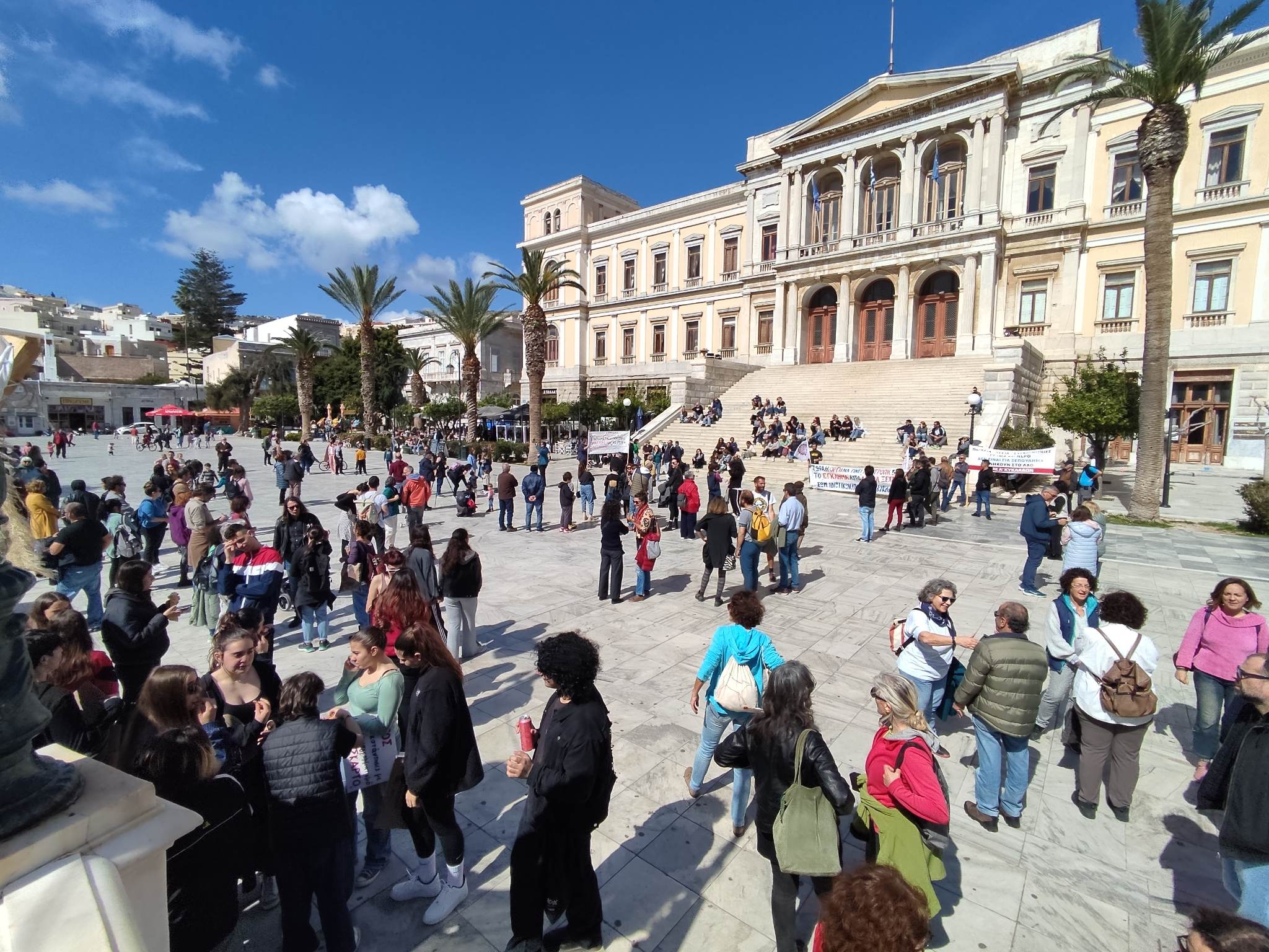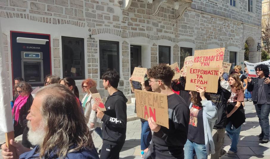 Στο πλαίσιο του καλέσματος που απηύθυναν αρκετοί Σύλλογοι και Σωματεία, φοιτητές, νέοι αλλά και μεγαλύτεροι άνθρωποι συγκεντρώθηκαν χθες το πρωί, στην πλατεία Μιαούλη, πραγματοποιώντας στη συνέχεια πορεία στις κεντρικές οδούς του ιστορικού κέντρου.
