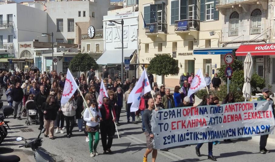Μαζική και η χθεσινή απεργιακή κινητοποίηση στη Σύρο με φόντο την πρόσφατη τραγωδία με θύματα νέους ανθρώπους