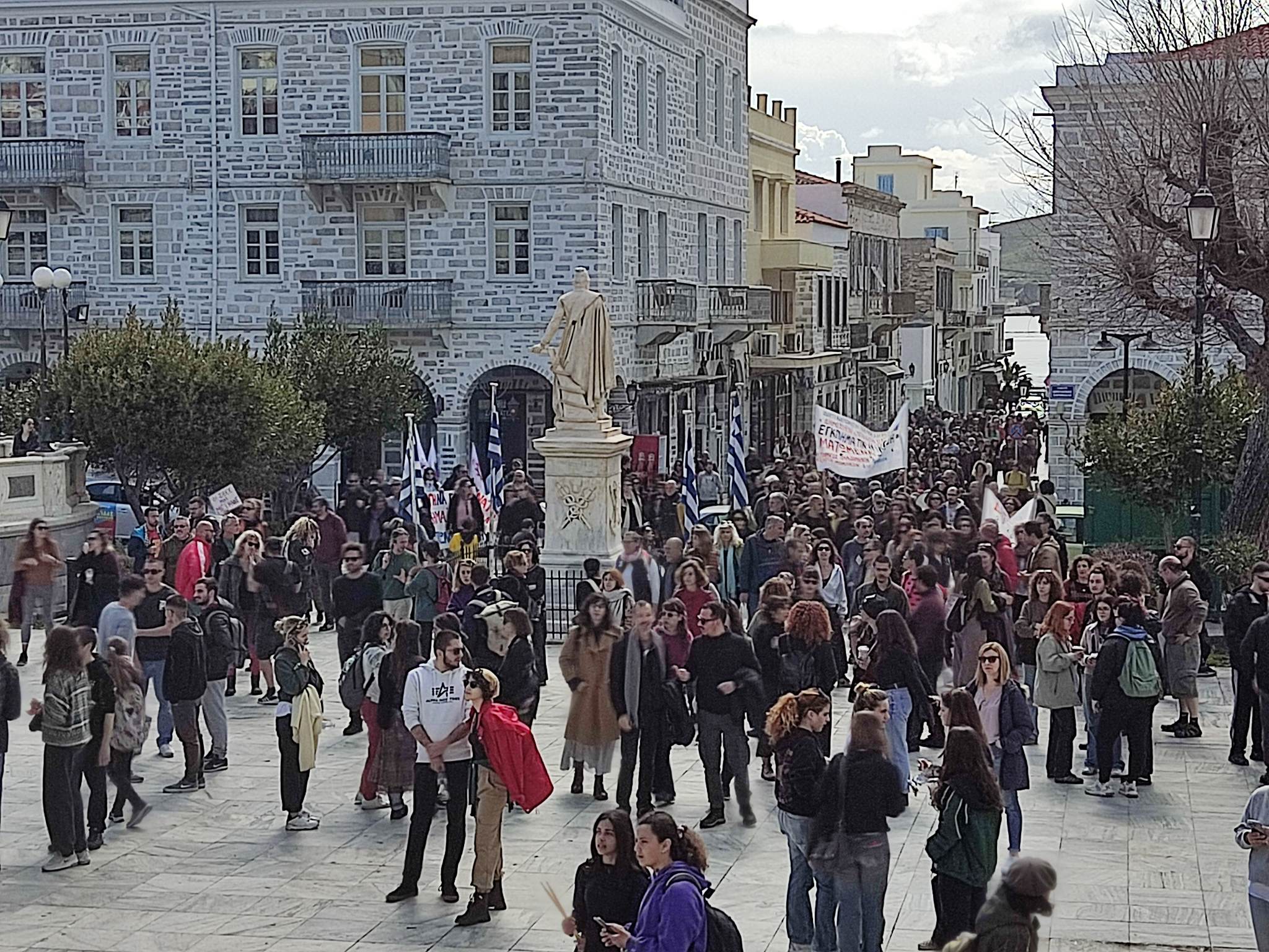 Νέα παιδιά, αλλά και μεγαλύτεροι άνθρωποι πραγματοποίησαν πορεία και διαδήλωση στο κέντρο της Ερμούπολης, με κοινό αίτημά τους “να μη συγκαλυφθεί το έγκλημα στα Τέμπη και να αποδοθούν ευθύνες”, κάτι που όπως είπαν στις ομιλίες τους, εκπρόσωποι Συλλόγων και Σωματείων, αναμένει ολόκληρη η ελληνική κοινωνία.