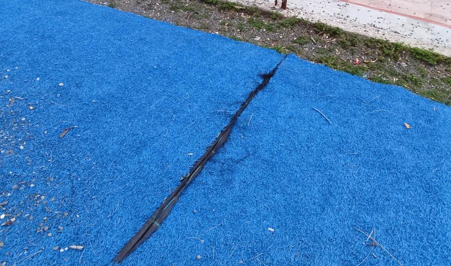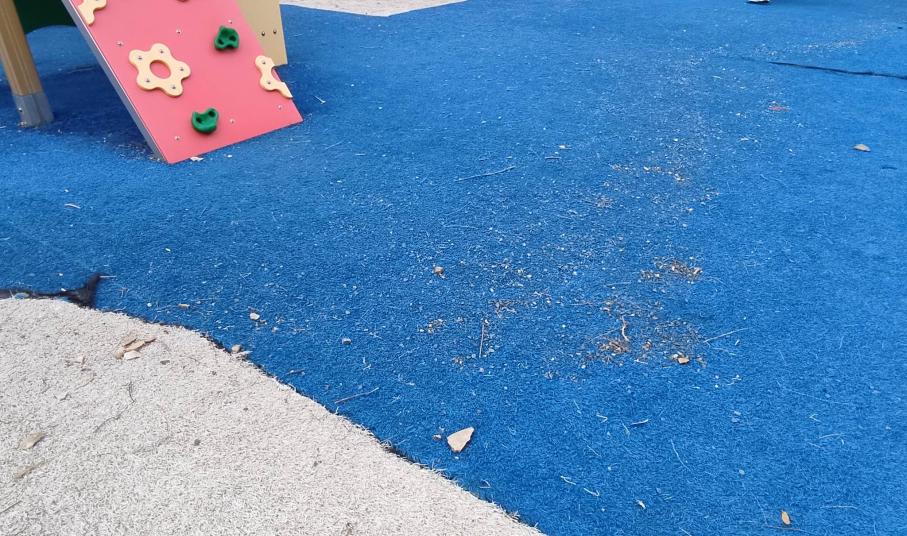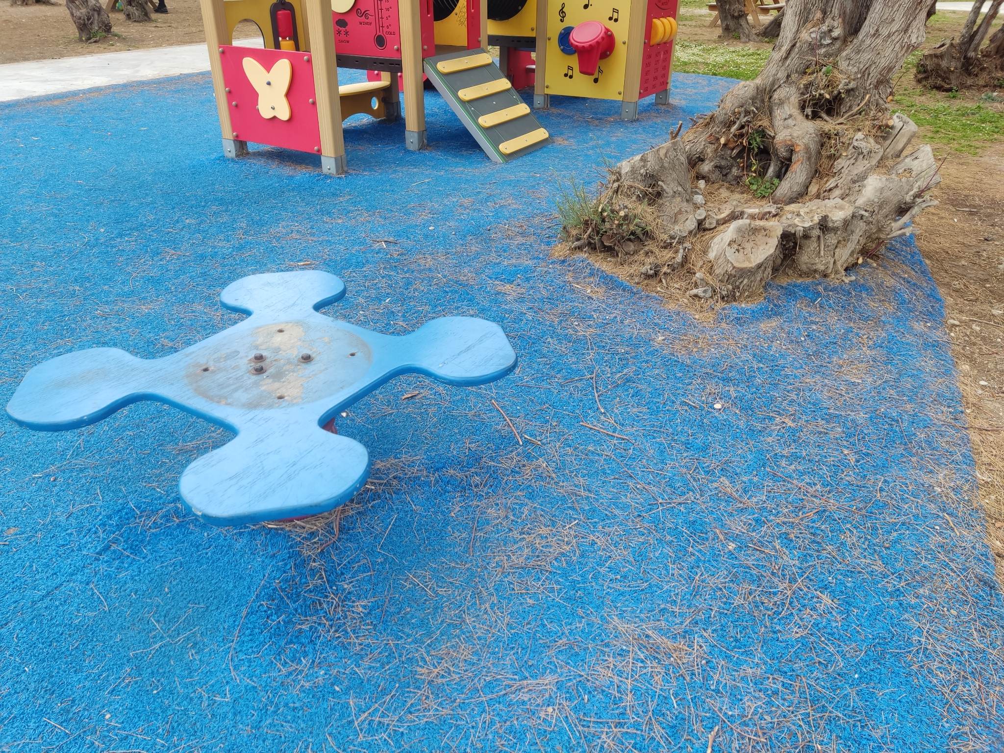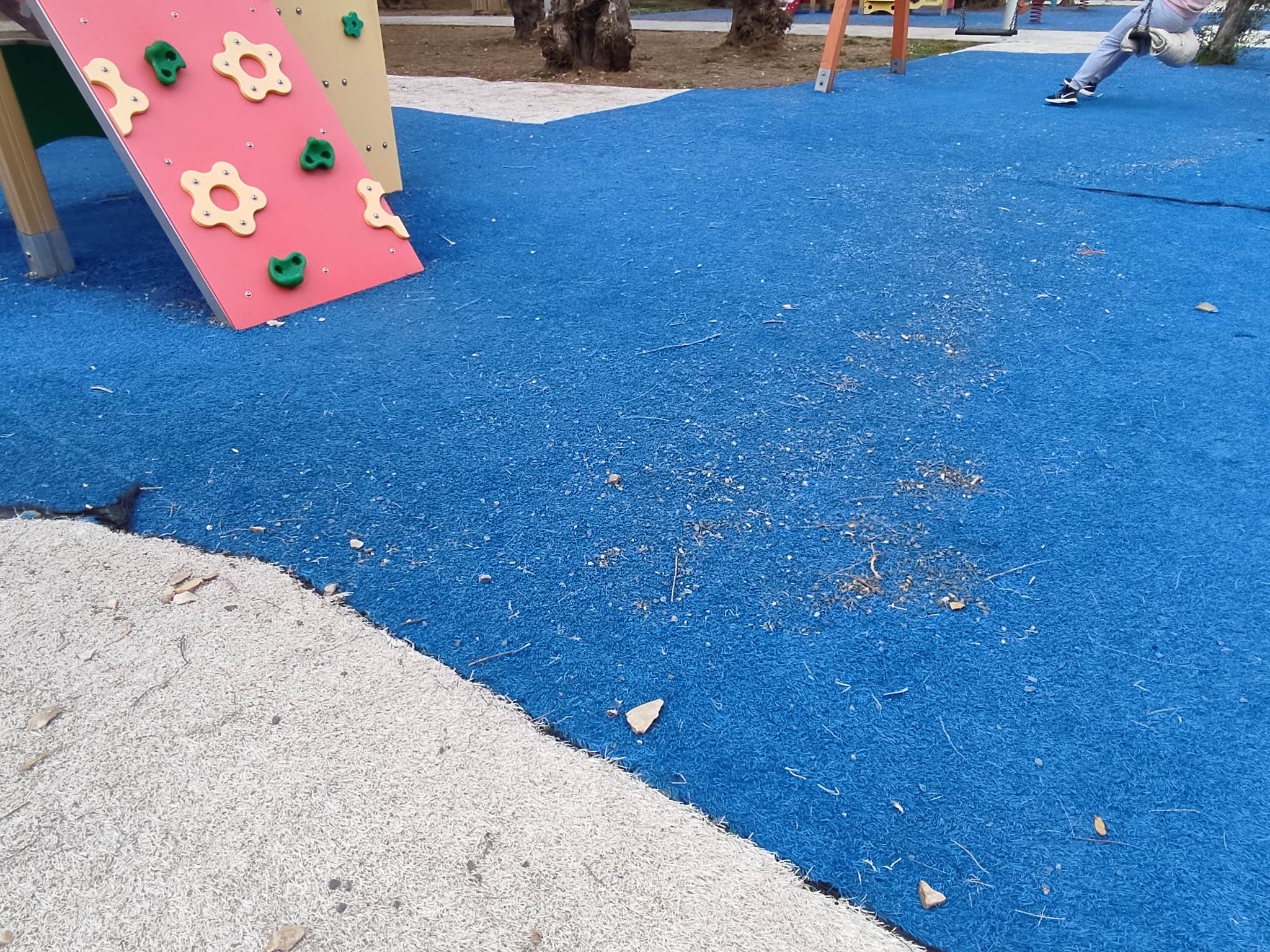 Ειδικότερα, μικρά αιχμηρά κλαδιά βρίσκονται σε απόσταση αναπνοής από τον εξοπλισμό της μεγάλης παιδικής χαράς, με αποτέλεσμα να ελλοχεύει ο κίνδυνος τραυματισμού παιδιών, σε ενδεχόμενο πτώσης τους πάνω σε αυτά. Παράλληλα, μικρότερα μέρη των δέντρων και πολλές πευκοβελόνες παραμένουν σε αρκετά σημεία που κάθονται και οι γονείς, ενώ σε ορισμένα τμήματά του, ο ειδικός τάπητας έχει κοπεί.
