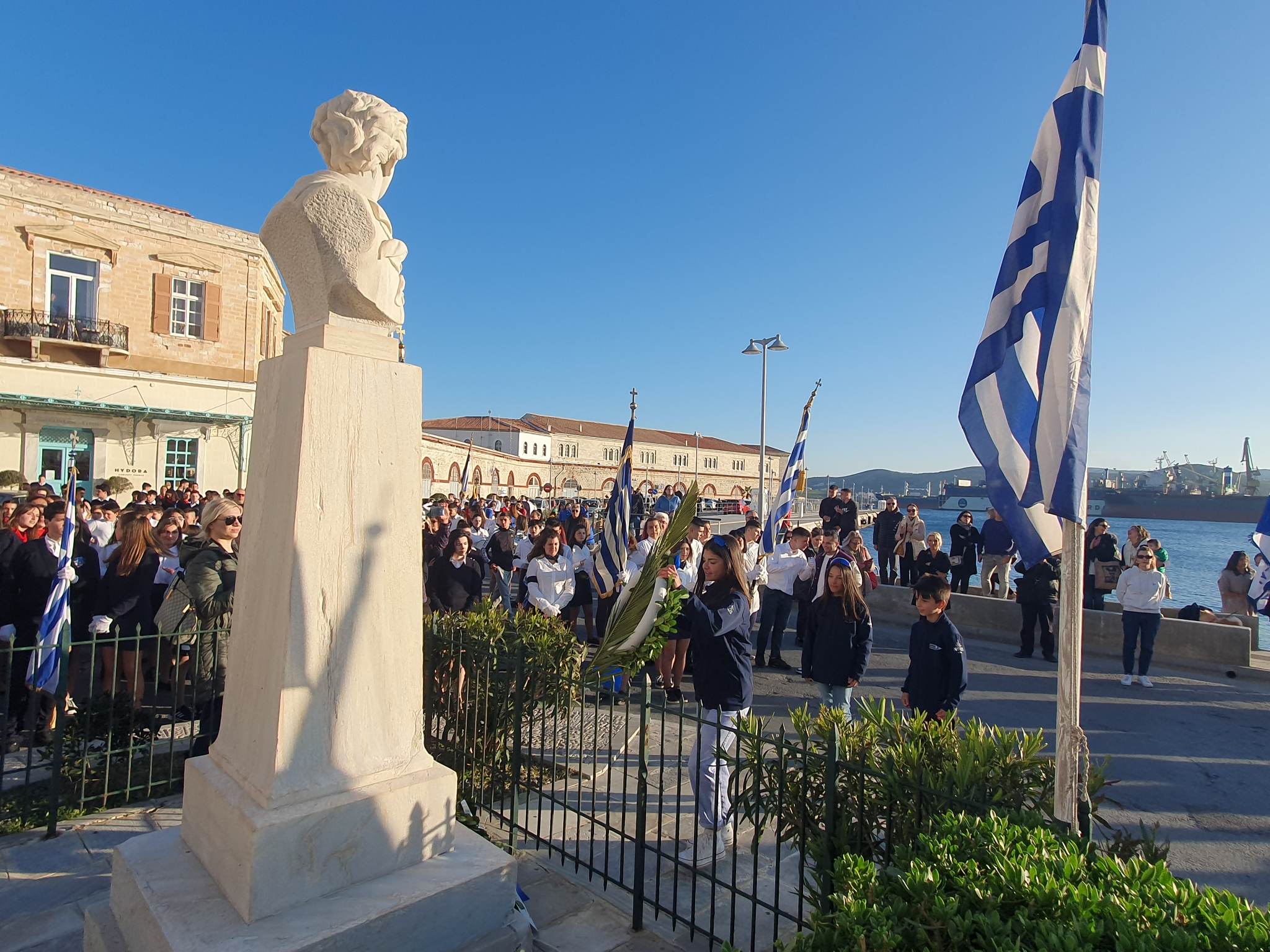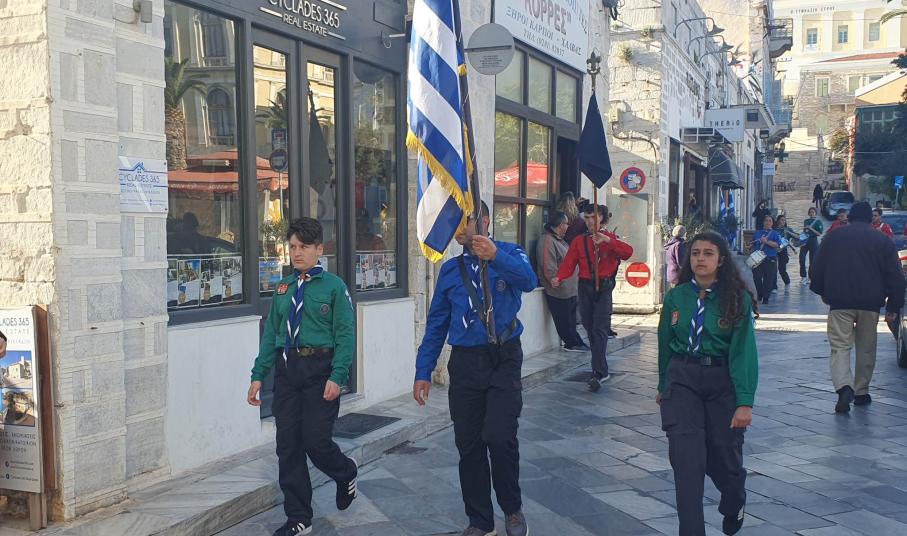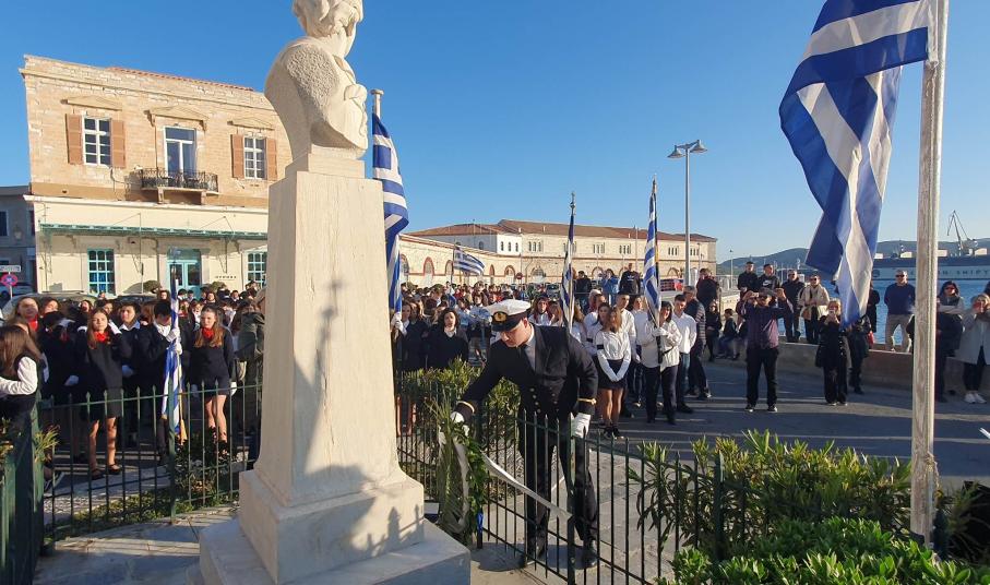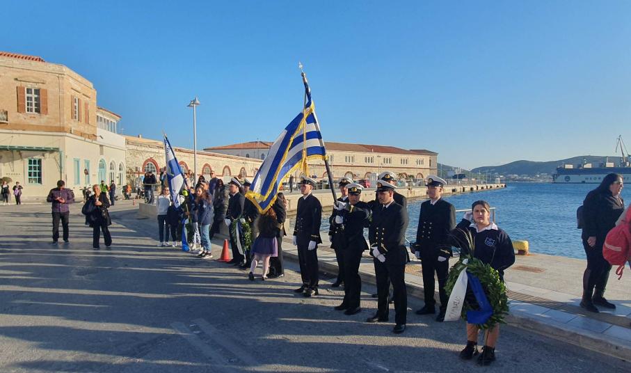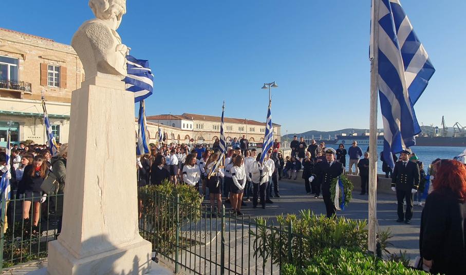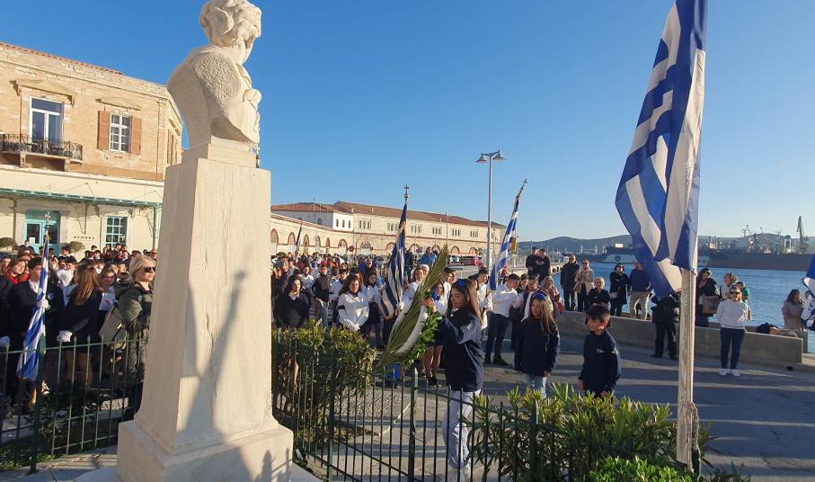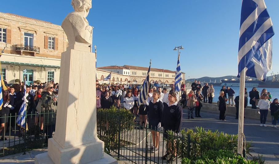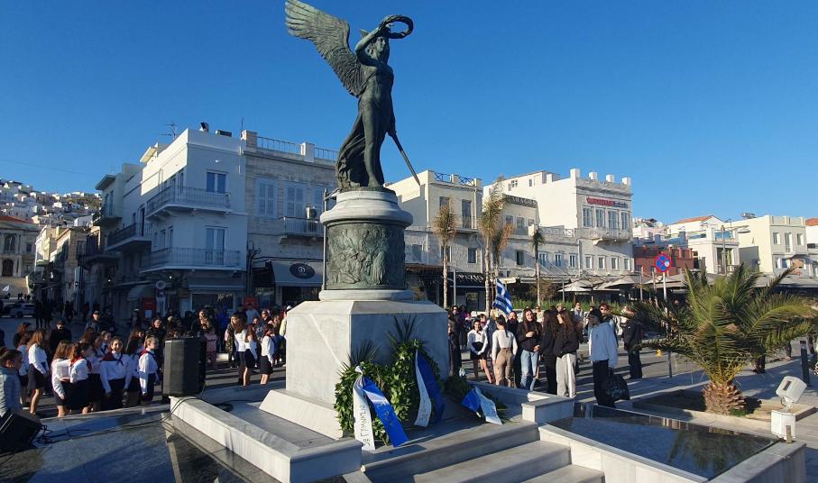 Την επέτειο της 25ης Μαρτίου τίμησαν οι μαθητές, οι σπουδαστές και οι πρόσκοποι της Σύρου, συμμετέχοντας το μεσημέρι της Παρασκευής στη στεφάνωση για την εθνική επέτειο.