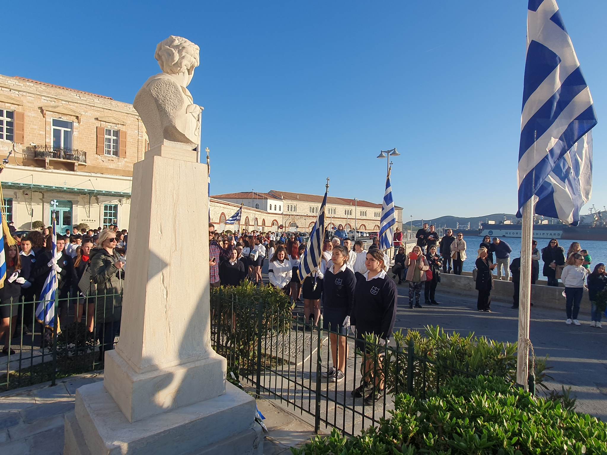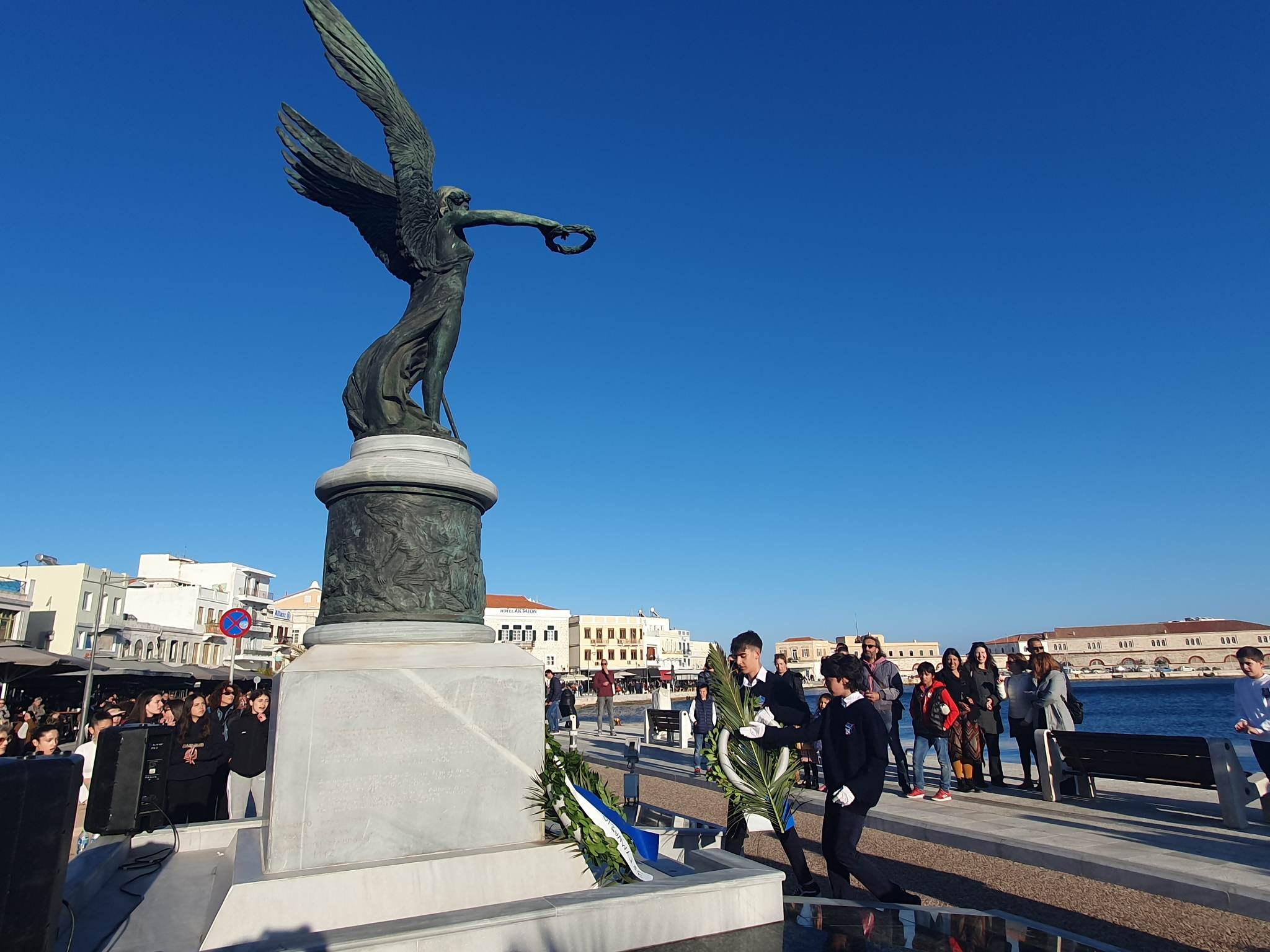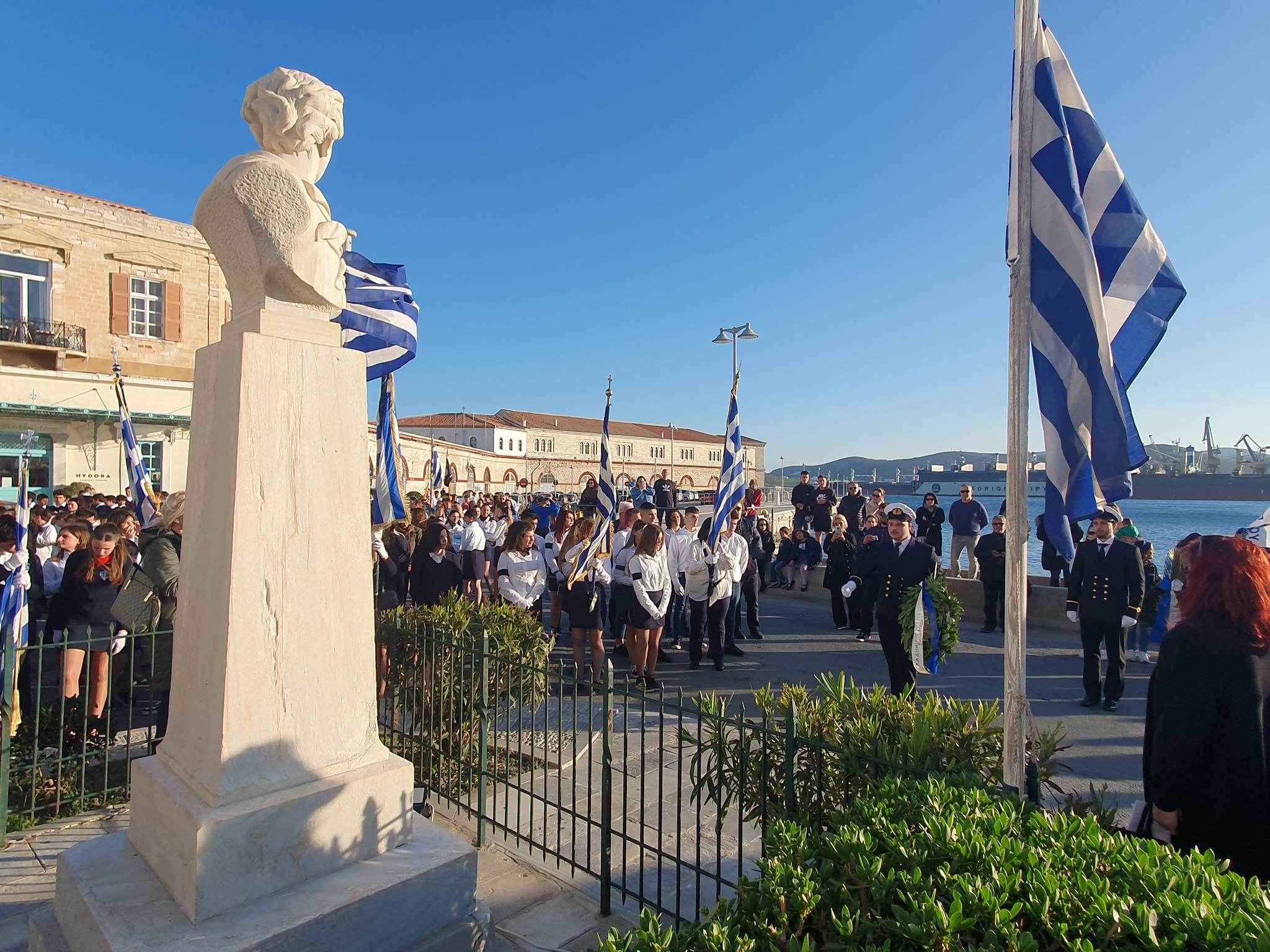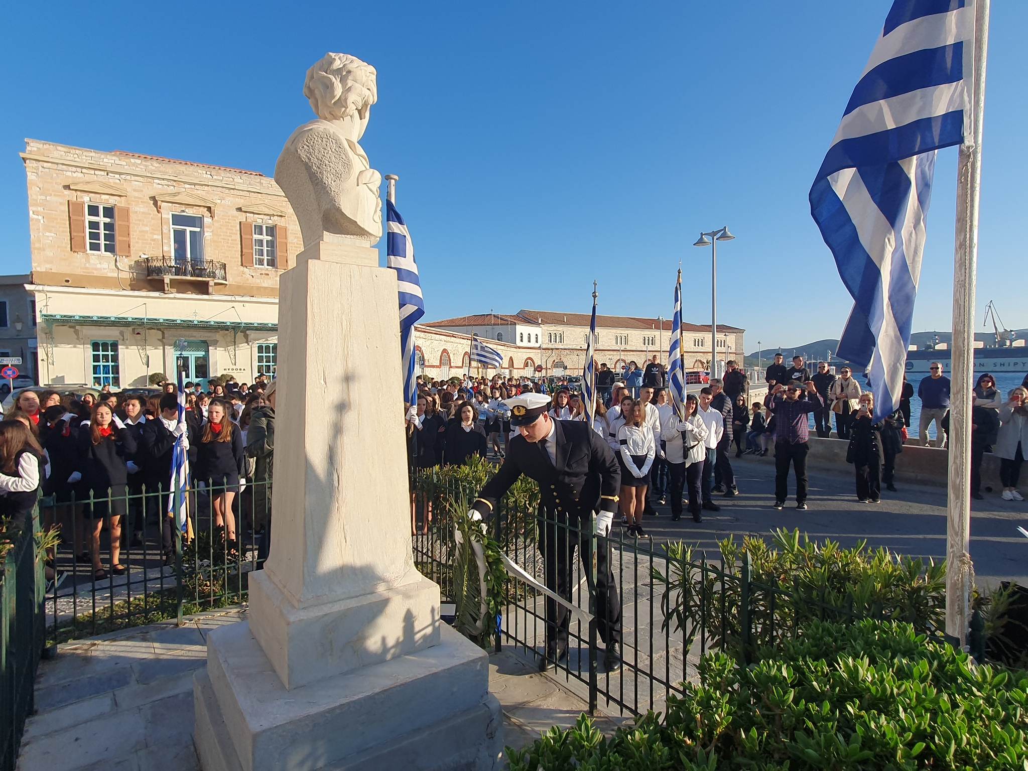 Την επέτειο της 25ης Μαρτίου τίμησαν οι μαθητές, οι σπουδαστές και οι πρόσκοποι της Σύρου, συμμετέχοντας το μεσημέρι της Παρασκευής στη στεφάνωση για την εθνική επέτειο.