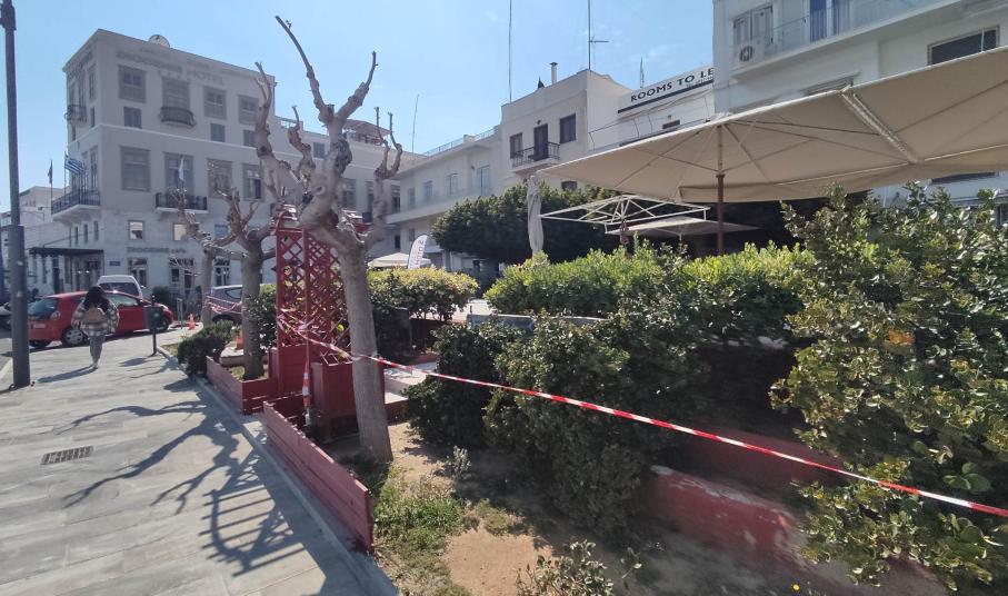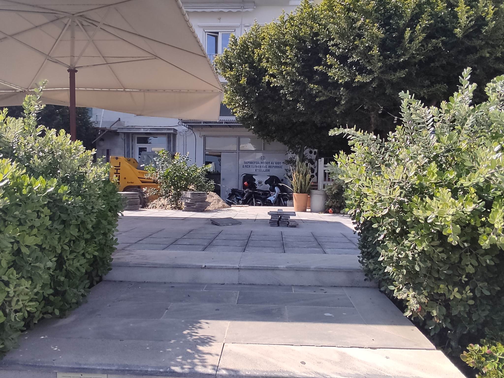 Ειδικότερα, παντελώς ακαλαίσθητη δείχνει η ξύλινη - χρώματος μπορντό - “αψίδα” σε κεντρικό τμήμα της εισόδου στην πλατεία Παπάγου, στο παραλιακό τμήμα της Ερμούπολης, η οποία και παραμένει στο σημείο, αν και ο χώρος δέχεται σημαντικές εργασίες για την αναβάθμισή του και την εξυπηρέτηση πεζών και επιχειρηματιών.