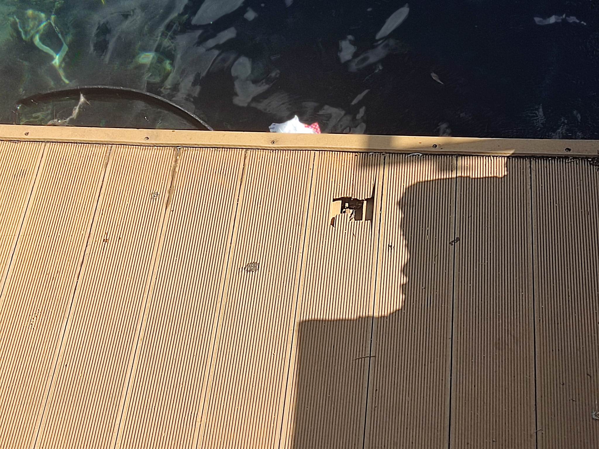 Συγκεκριμένα, το ξύλινο ντεκ έχει σπάσει σε αρκετά σημεία του, έχει τρύπα σε ένα κομμάτι του, ενώ σε αρκετά τμήματά του, οι ξύλινες πλάκες έχουν αποκολληθεί από τη βάση τους. Αποτέλεσμα όλων των ανωτέρω είναι οι λουόμενοι να κινδυνεύουν να τραυματισθούν, καθώς σε πολλά σημεία της, η πλατφόρμα δείχνει να έχει φθαρεί.