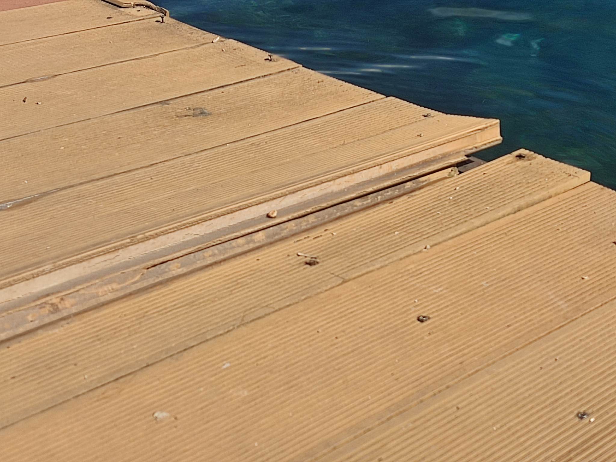 Εικόνα που δεν εμπνέει τους πολίτες για αναψυχή και για μπάνιο στη θέση Νησάκι, δείχνει να έχει πλέον, η ξύλινη πλατφόρμα που είναι τοποθετημένη στην αρχή του προσήνεμου μόλου, καθώς φέρει αρκετές φθορές.
