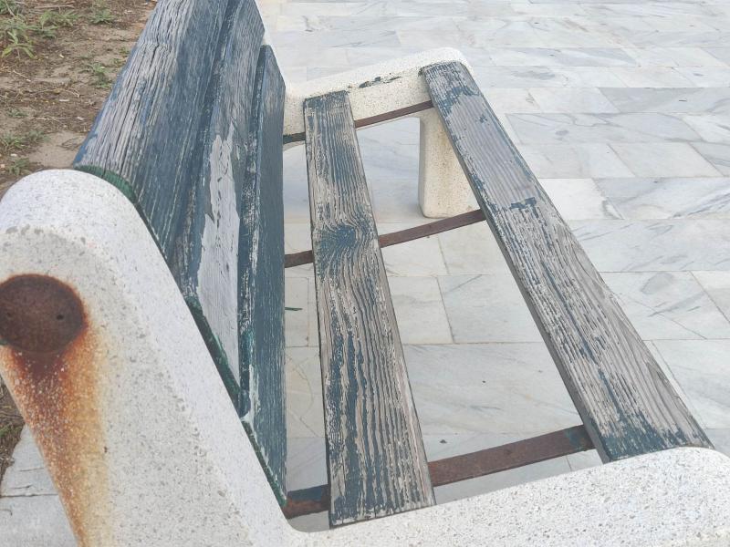 Βέβαια, συντηρήσεις χρειάζονται και ορισμένα από τα παγκάκια στην είσοδο του αθλητικού κέντρου, καθώς λείπουν τα καθίσματά τους.